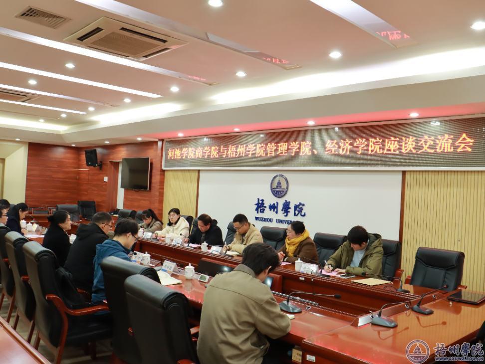 12月23日,河池学院商学院院长覃举东一行7人到我校管理学院、经济学院进行调研交流,座谈会由管理学院副院长赵虹主持。