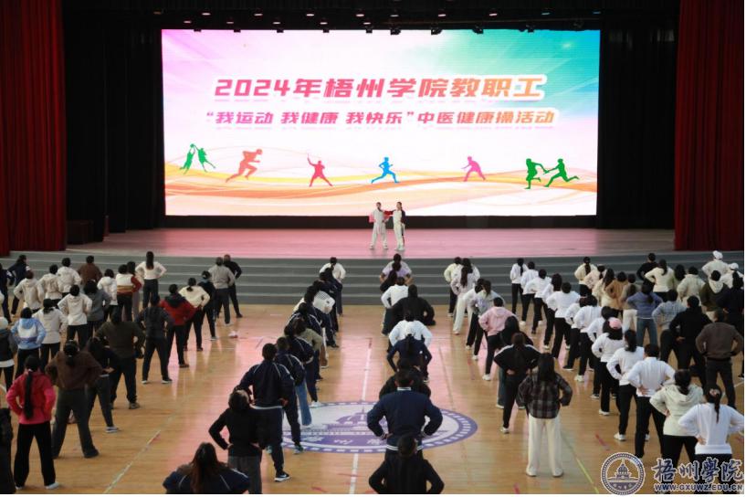 活动中进行了健身气功·八段锦和颈肩腰腿保健操的学习和操练,全体教职工精神饱满,展现出积极向上的精神风貌。颈肩腰腿保健操属于自治区级非物质文化遗产技艺,由梧州市中医院派中医导引师进行现场教学。