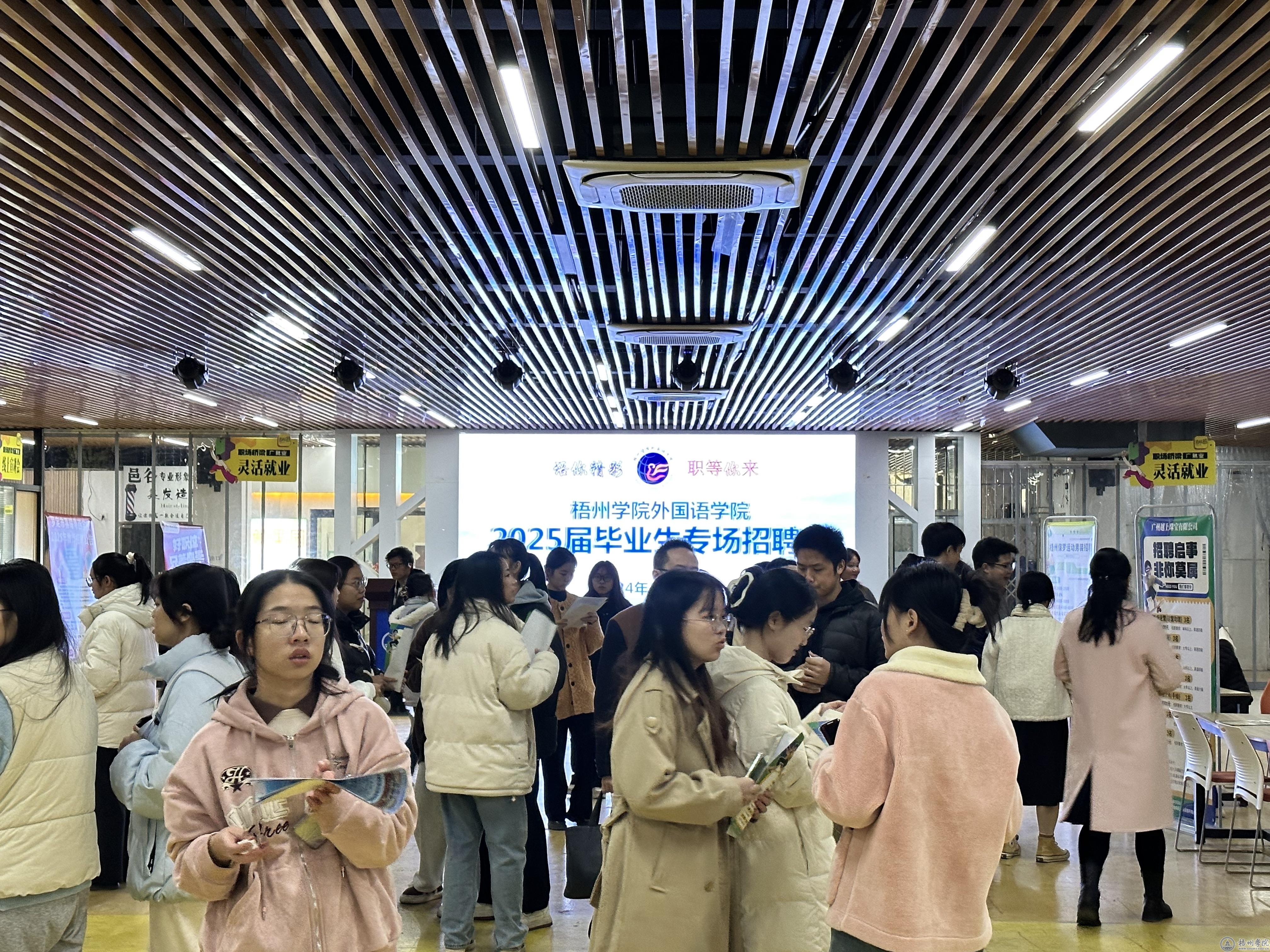 12月15日,外国语学院在体育馆邑谷中心举办“语你精彩·职等你来”2025届毕业生专场招聘会。