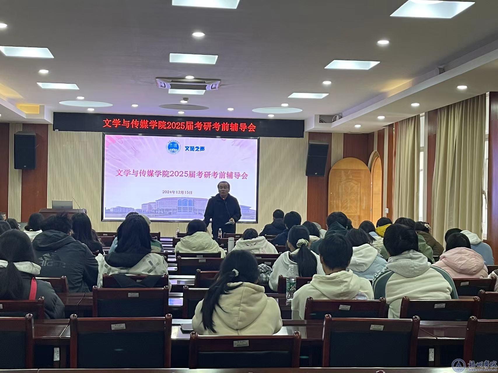 为增强学生考研信心,缓解压力,12月15日,文学与传媒学院在明理楼七楼视频会议室召开2025届考研考前辅导会,邀请哲学专业教师吴军博士给考研毕业生做考前冲刺辅导。学院教师代表、毕业班辅导员和2021级考研学生参加。