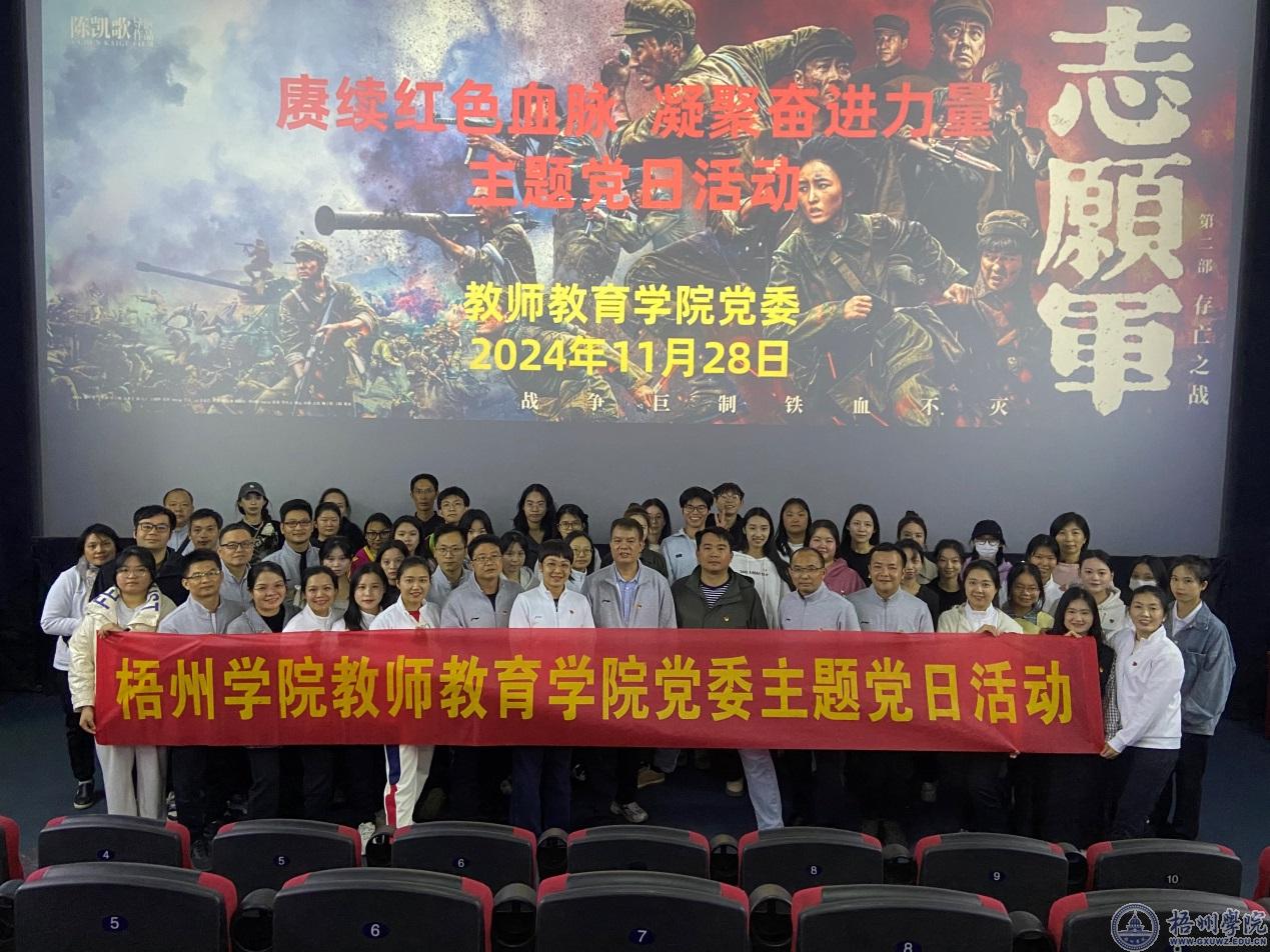 为深化党性教育,传承红色基因,11月28日下午,教师教育党委组织师生党员开展了“赓续红色血脉 凝聚奋进力量”主题党日活动——集体观看《志愿军2:存亡之战》,感受那段波澜壮阔的战争史诗。