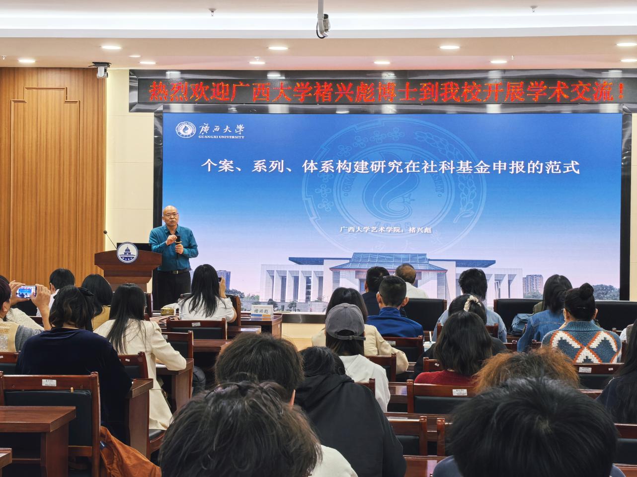 12月4日下午,宝石与艺术设计学院在明科楼1楼报告厅成功举办了一场关于国家社科基金项目申报的学术讲座。此次讲座特邀广西大学褚兴彪教授主讲,他以“个案、系列、体系构建研究在社科基金申报的范式”为主题,为在场的教科研人员和学生带来了一场内容丰富、指导性强的学术盛宴。对社科基金申报感兴趣的教师和学生参加了讲座,讲座由宝石与艺术设计学院院长贠禄主持。