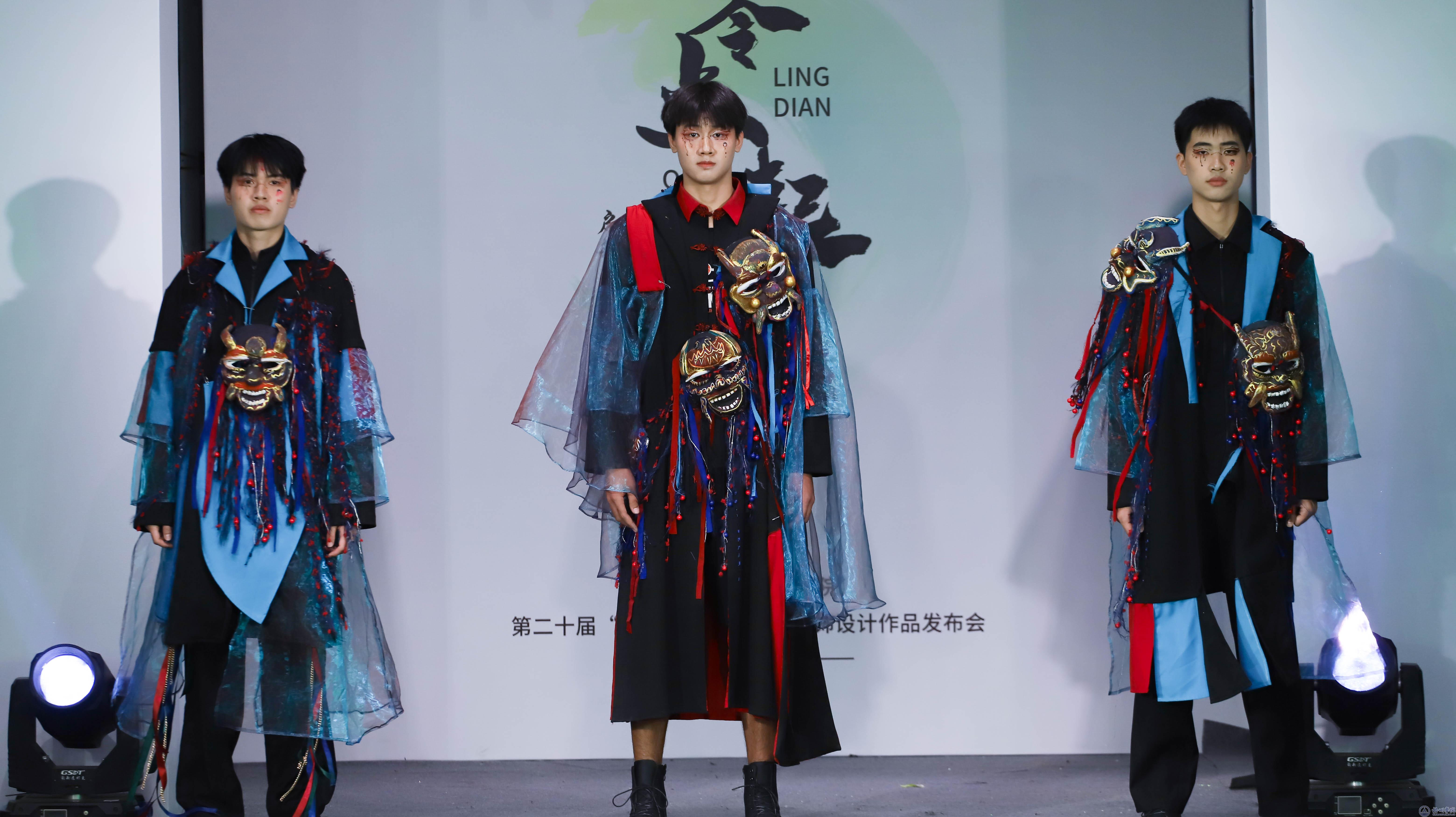 本届时装秀共出展了57位21级服装与服饰设计专业应届毕业生的170多套不同风格不同款式的服装作品。作品展分为《启程》《新视界》两个板块,分别展示创意休闲类设计作品与礼服类设计作品。在《启程》板块中,共展示了34个创意休闲类作品,众多服装设计各具特色,有以敦煌瑞兽、南丰傩面具、饕餮纹等传统文化元素为灵感,融合现代手法展现文化韵味的作品;也有借鉴外卖员、宇航服、西部牛仔等现代或地域特色元素进行创作的作品。如吴昌瑾的《呦呦思古》以敦煌壁画瑞兽造型与色彩融入服装,表达了传承和弘扬敦煌文化的决心;朱忠的《速递者》以外卖骑手元素打造系列运动休闲装;黄缘红的《西部狂野牛仔》将传统与现代融合致敬牛仔文化等。在《新视界》板块中,共展示了23个礼服类设计作品,这些礼服设计灵感多元,融合了古今中外元素。如熊贤江《蟠螭新韵》以蟠螭纹搭配黑金色,尽显高贵;陈仪珊《伊西斯》提取古埃及元素,造型庄重威严;徐芬芳《暮城玫瑰》借鉴中世纪玫瑰窗,营造神秘氛围。还有以南京绒花、贵州蜡染、畲族凤凰纹样等为灵感的作品,以及结合京剧服饰、哥特式建筑、古希腊神话等元素的设计,它们将传统与现代工艺、文化与时尚理念相融合,展现出了独特魅力与文化内涵。这些设计作品从多方面挖掘灵感,在传承文化、展现个性与时尚融合上各显神通。