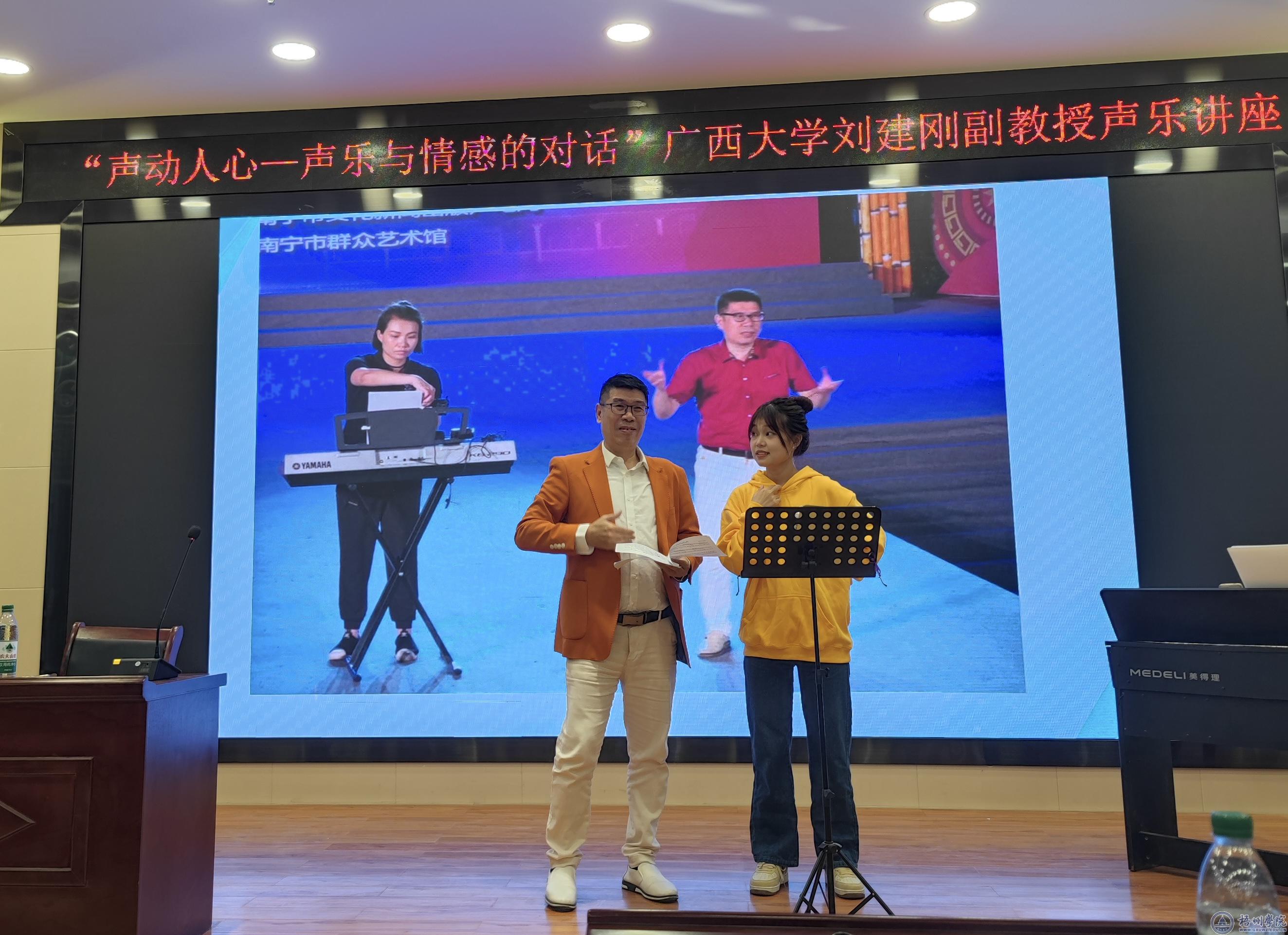近日,教师教育学院邀请广西大学艺术学院刘建刚副教授在明科楼1楼报告厅举办“声动人心——声乐与情感的对话”讲座。教师教育学院200余名师生参加讲座。