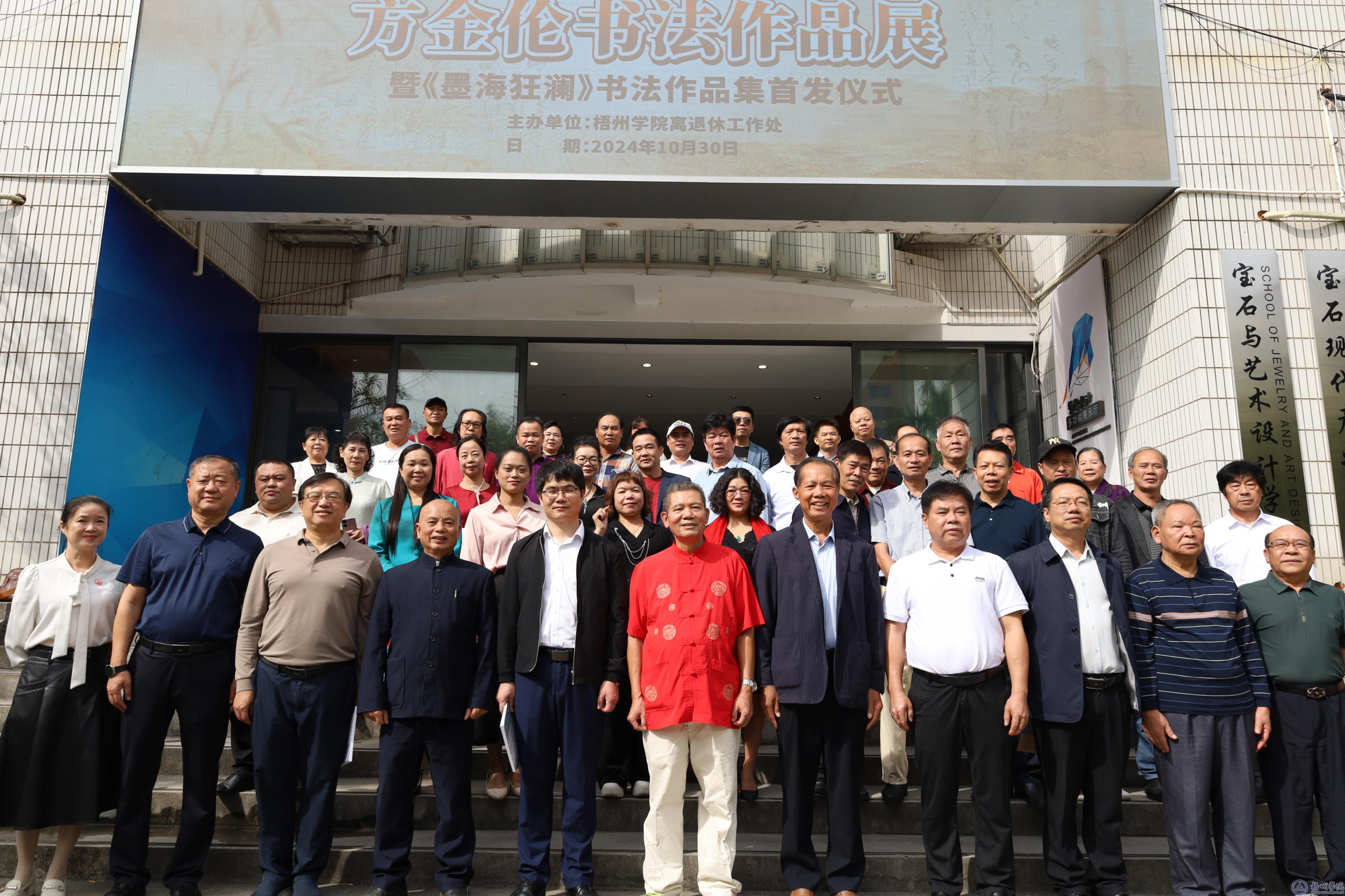 为传承民族文化、弘扬书法艺术,展示退休老同志的艺术才华,让他们老有所学、老有所为,老有所乐。10月30日上午,学校在实验楼一楼多功能展厅举办退休老同志方金伦书法作品展暨《墨海狂澜》书法作品集首发仪式。本次活动由学校离退休工作处主办。学校党委常委、宣传部部长邓小林,学校工会副主席彭赞文,人事处、离退休工作处副处长黄海,梧州市、封开市、桂林市文艺界代表参加仪式并观看展览。活动由黄海主持。