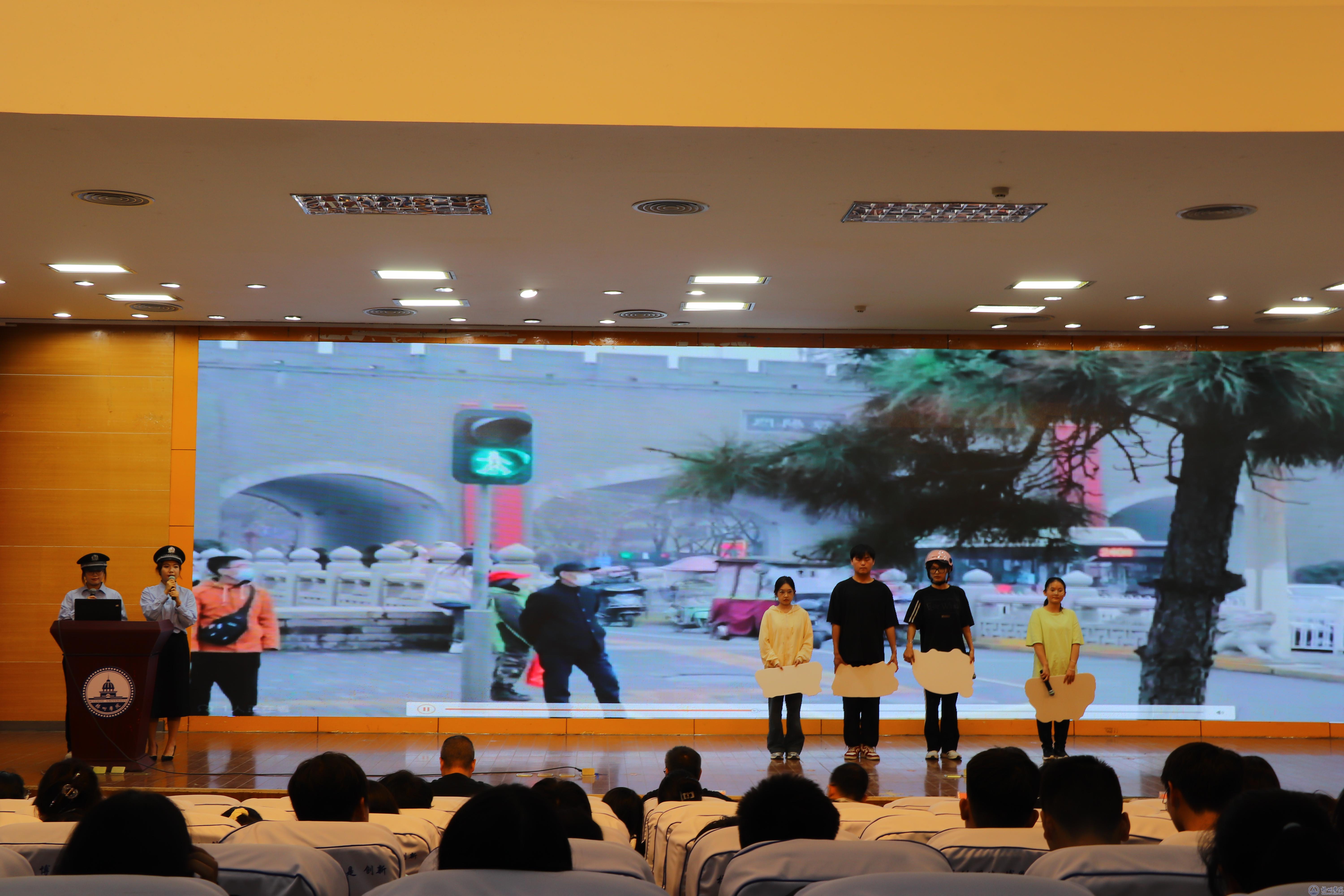 本次比赛的参赛选手由各二级学院团委和校级学生组织选派,共12支参赛队。各参赛队轮番上阵,选手们紧扣主题,结合PPT和视频案例,从文明素养、安全意识、普法宣传、出行常识、案例警示等方面开展宣讲,通过场景模拟、现场互动、脱口秀等艺术形式,用巧妙的创意和真情的演绎为现场观众带来一个个有声有色、通俗易懂、思想深刻的交通安全文化盛宴,现场掌声阵阵,各种交通安全知识随着有趣有味的剧情进入观众眼中、脑中、心中。