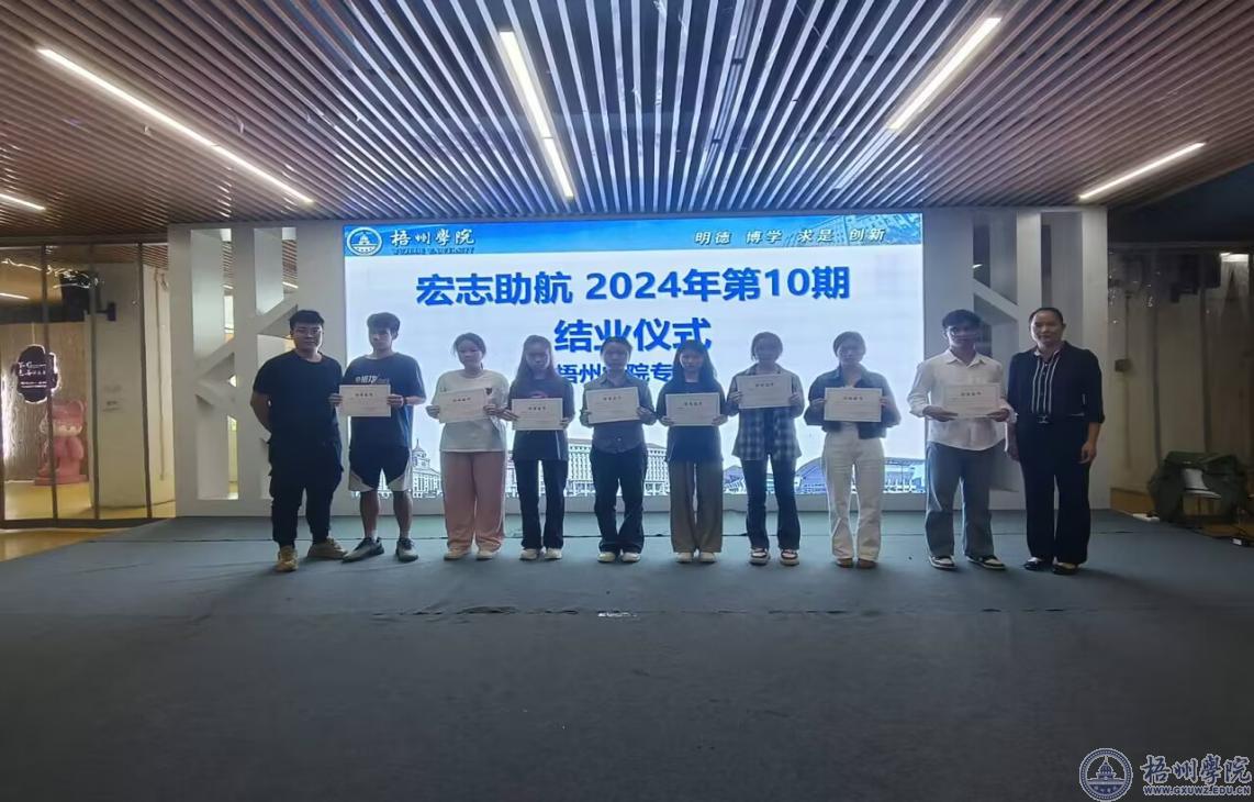 10月25日下午,2024年“宏志助航计划”毕业生就业能力培训班结业仪式在体育馆负一楼邑谷中心举行。广西国际商务职业技术学院(主办单位)、学校就业办公室、培训教师及参训学生共100人参加了结业仪式。