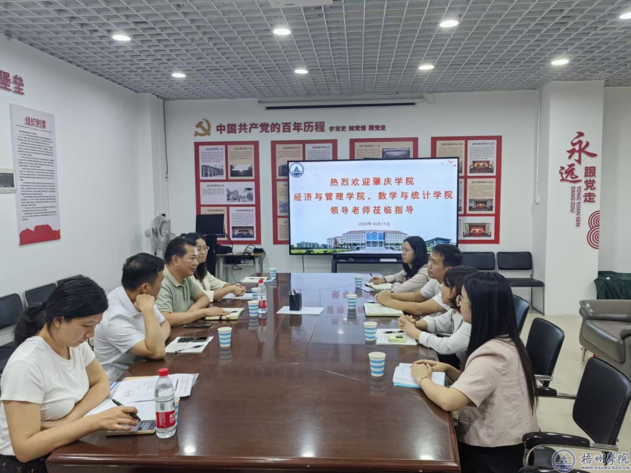 10月11日,肇庆学院经济与管理学院、数学与统计学院党政领导一行来我校交流,在体育馆负一楼邑谷中心举行了研究生招生宣讲会,经济学院、管理学院、大数据与软件工程学院的相关领导、辅导员代表以及有考研意向的学生代表参加。