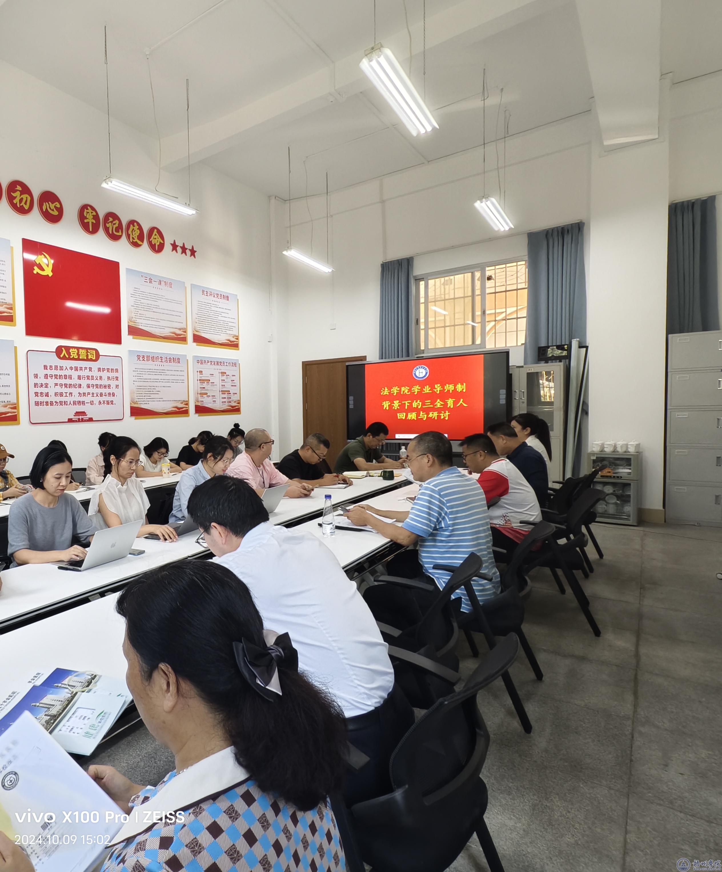10月9日,法学院在党员活动中心召开会议,会议的中心议题是对法学院学业导师制背景下的“三全育人”实施情况进行全面回顾和认真总结,并对法学院未来学业导师制下的“三全育人”进行了有针对性的部署和展望。