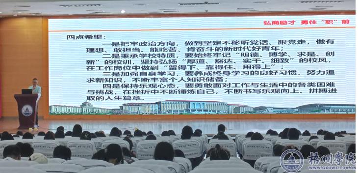会上,学院党委书记黄焕克从就业创业政策、学院历届毕业生就业情况、2025届毕业生就业意向调查情况详细剖析了当前的就业形势,并对大家提出了四点建议:认清就业形势,坚定就业信心;明确就业目标,放平就业心态;拓宽就业渠道,增加就业成功率;树立良好形象,积极主动就业。