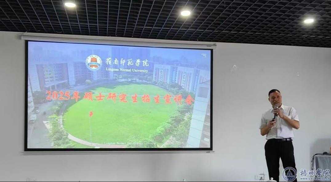 10月11日,岭南师范学院化学化工学院院长周小松一行到食品与制药工程学院交流,在北区实训楼N205室举办了研究生招生宣讲会。本次活动学院院长江成英主持,2025届毕业生及有考研意向的学生参加。