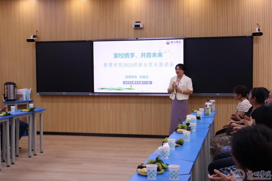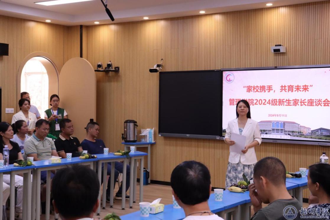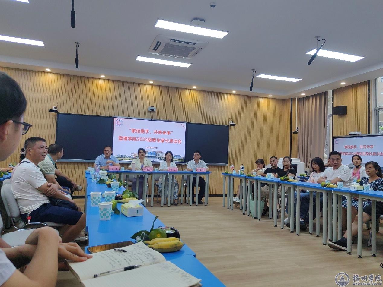 为了加强学院与新生家长之间的沟通与交流,让家长更好地了解学院的教学理念、专业特色和学生管理工作,共同促进学生的成长与发展,9月11日下午,管理学院在明理楼M210召开以“家校携手,共育未来”为主题的2024级新生家长座谈会。新生家长代表,管理学院班子成员,各专业教研室主任、新生辅导员、班主任参加座谈会。