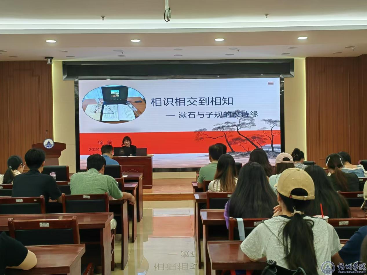 下午,徐前博士以《相识相交到相知——漱石与子规的汉诗缘》为题,生动讲述了夏目漱石与正冈子规两位著名作家的生平事迹,以及他们通过汉诗建立起的深厚友谊。这不仅让师生们对两位作家的交往有了详细了解,还引发了大家对如何在新时代传承和发展中国传统诗词文化的深入思考。