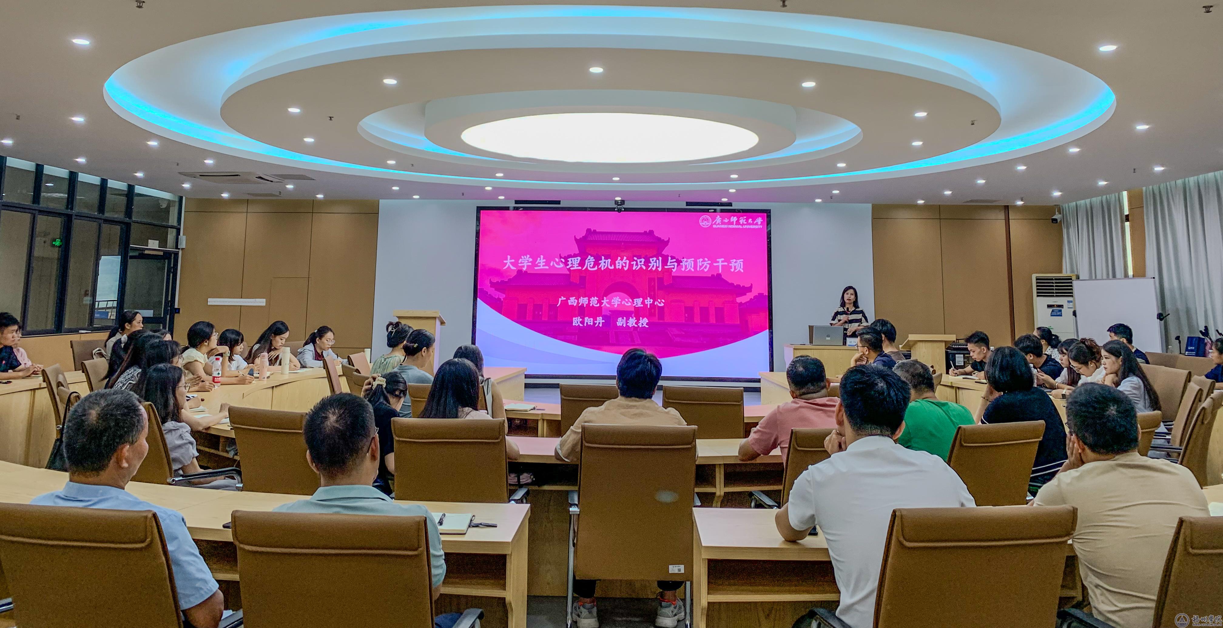 8月28日,我校在明科楼1108会议室举办学工队伍心理育人工作能力提升专题培训,邀请广西师范大学副教授欧阳丹作专题授课。全体辅导员、心理健康教育中心专兼职教师和二级心理工作站全体人员参加培训。