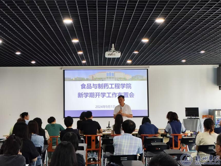 食品与制药工程学院于9月1日上午在食药学院会议室N205召开了上学期工作总结和新学期工作布置会。会议由学院党委书记陈金辉主持,学院领导和全体教职工参加会议。