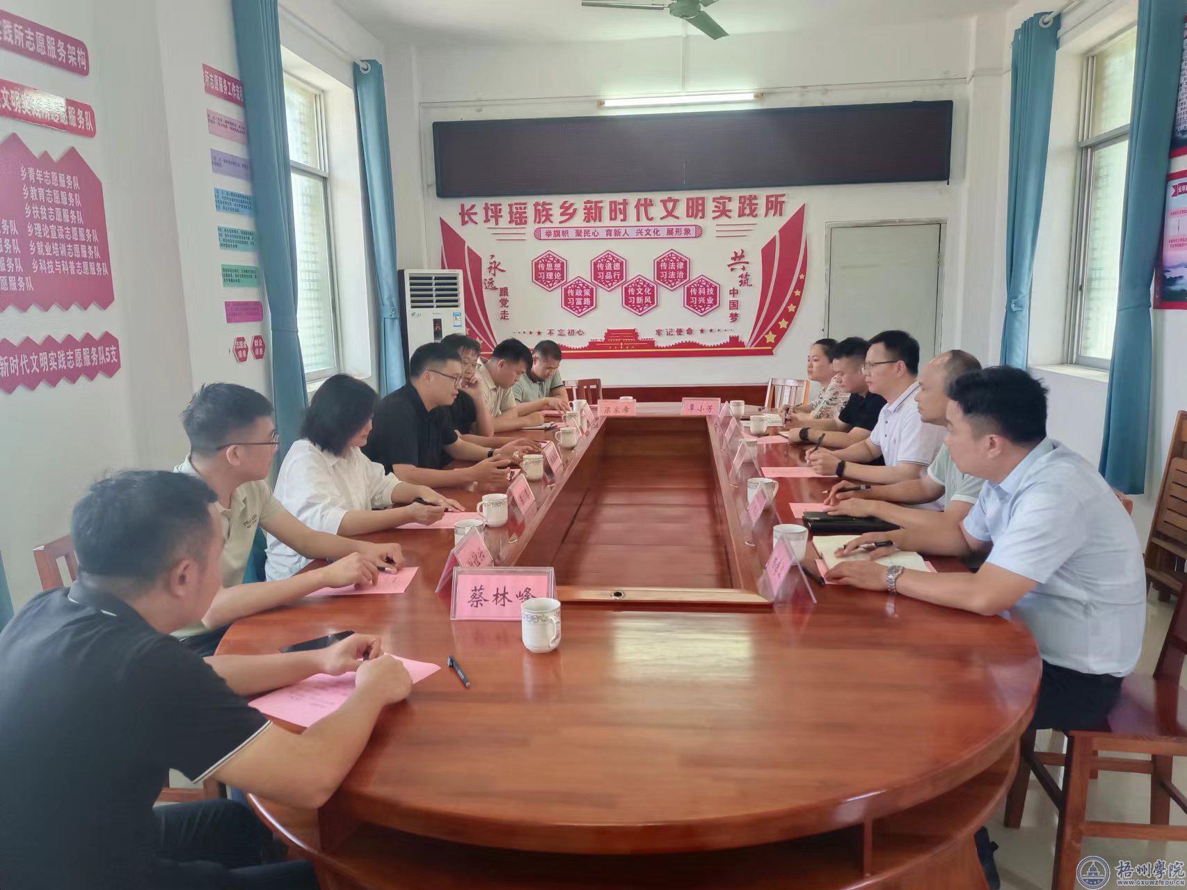 7月10日,学校财务处党支部联合校团委、教师教育学院相关支部书记和党员前往蒙山县长坪瑶族乡进行调研,围绕大创科研选题、文旅产业发展、特色农业联农带农等主题进行座谈,蒙山县委常委、副县长李泽庆参加座谈会。座谈会结束后,财务处党支部党员与李泽庆常委、校团委秦伟书记探访教师教育学院在长坪乡民族小学开展“三下乡”实践的师生。