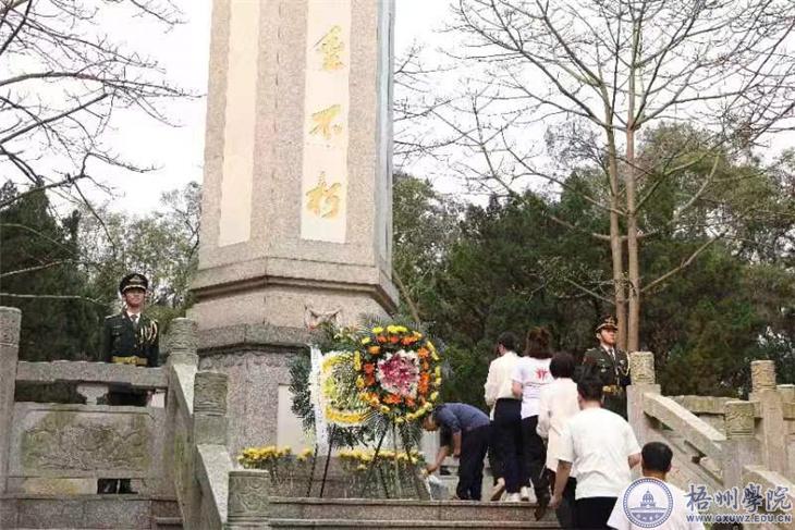 8时50分,活动正式开始。伴随着激昂雄壮的《义勇军进行曲》音乐响起,全场高唱中华人民共和国国歌。随后,全场肃立,向为中国人民解放事业英勇献身的烈士默哀。默哀毕,伴着深情的《献花曲》音乐,两位国旗护卫队队员迈着铿锵有力的步伐,齐步行进至烈士纪念碑前,庄严地向烈士敬献花圈,全体党员和团员青年队列整齐、神情肃穆地向革命烈士鞠躬并献上手中的菊花,大家缓步绕行,瞻仰烈士纪念碑文,表达对革命烈士无限的哀思、崇敬与感念。