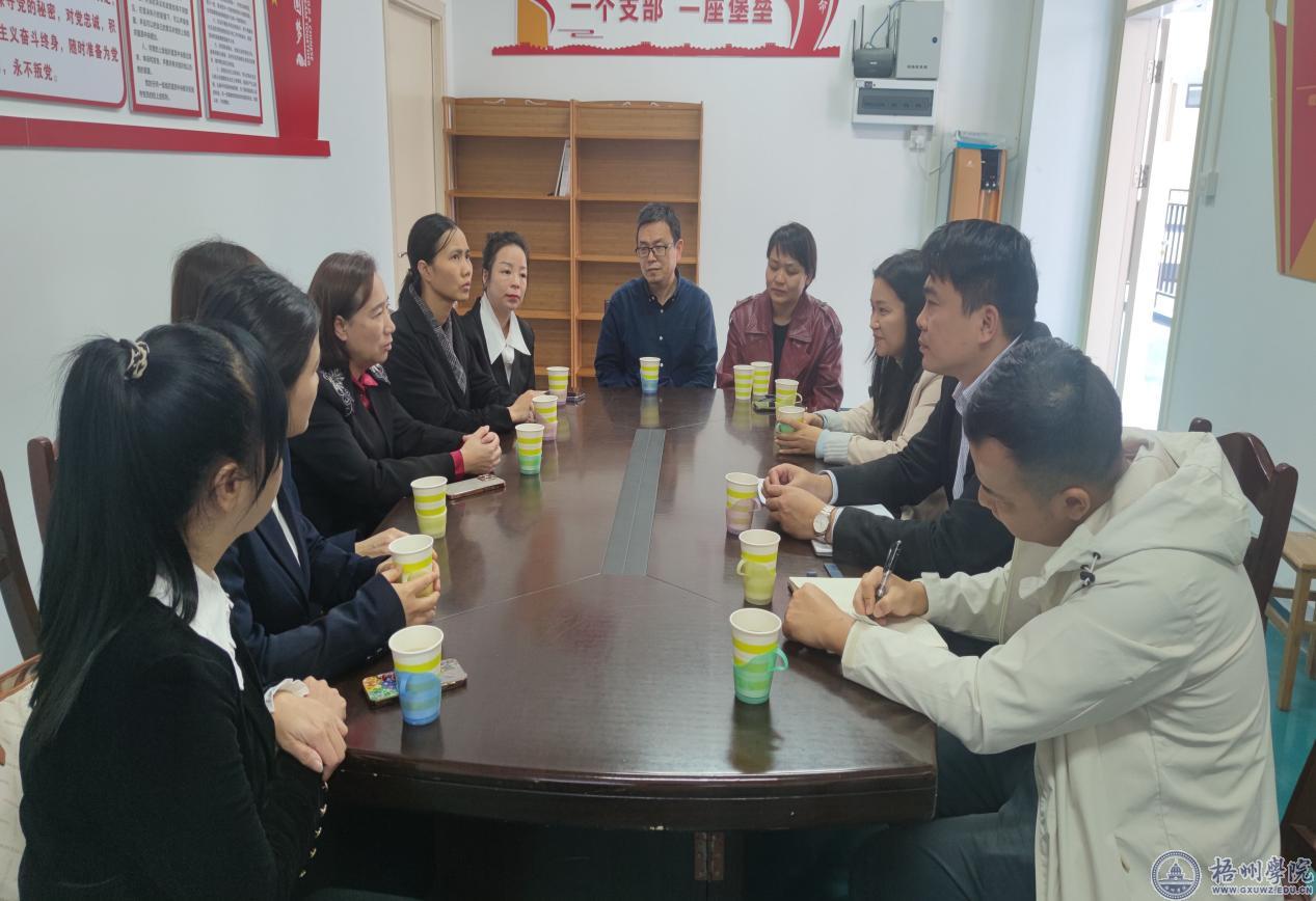 4月9日下午,梧州市一心教育集团负责人蔡永杨携一心教育实验幼儿园、蝶山教育实验幼儿园、一心幼儿园、龙湖教育实验幼儿园、一心教育培训中心共5家机构的负责人一行到教师教育学院,在北片区教学楼N410会议室开展洽谈合作事宜。教师教育学院党委副书记庄雨、学生工作办公室和学前教育专业教研室教师代表参加了会议。