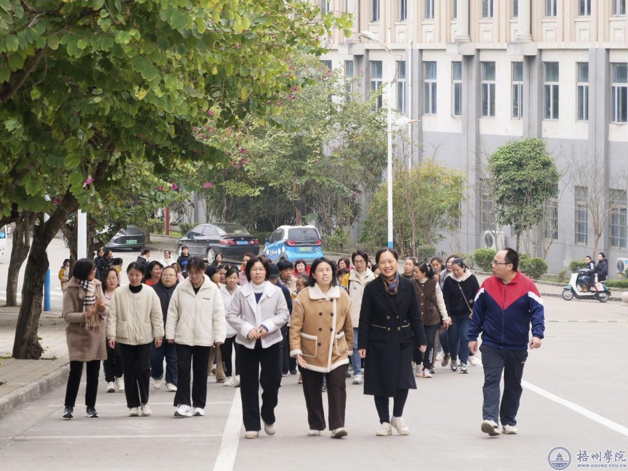 活动在欢声笑语中拉开序幕,女教职工们合影留念后,从体育馆出发,沿着风雨球场、学生第六食堂、A4学生宿舍楼、环图书馆山路阔步前行,沿途大家兴致盎然,用眼睛领略自然风光,用脚步丈量梧院之美。健步走的队伍也成了美丽梧院的一道靓丽风景。