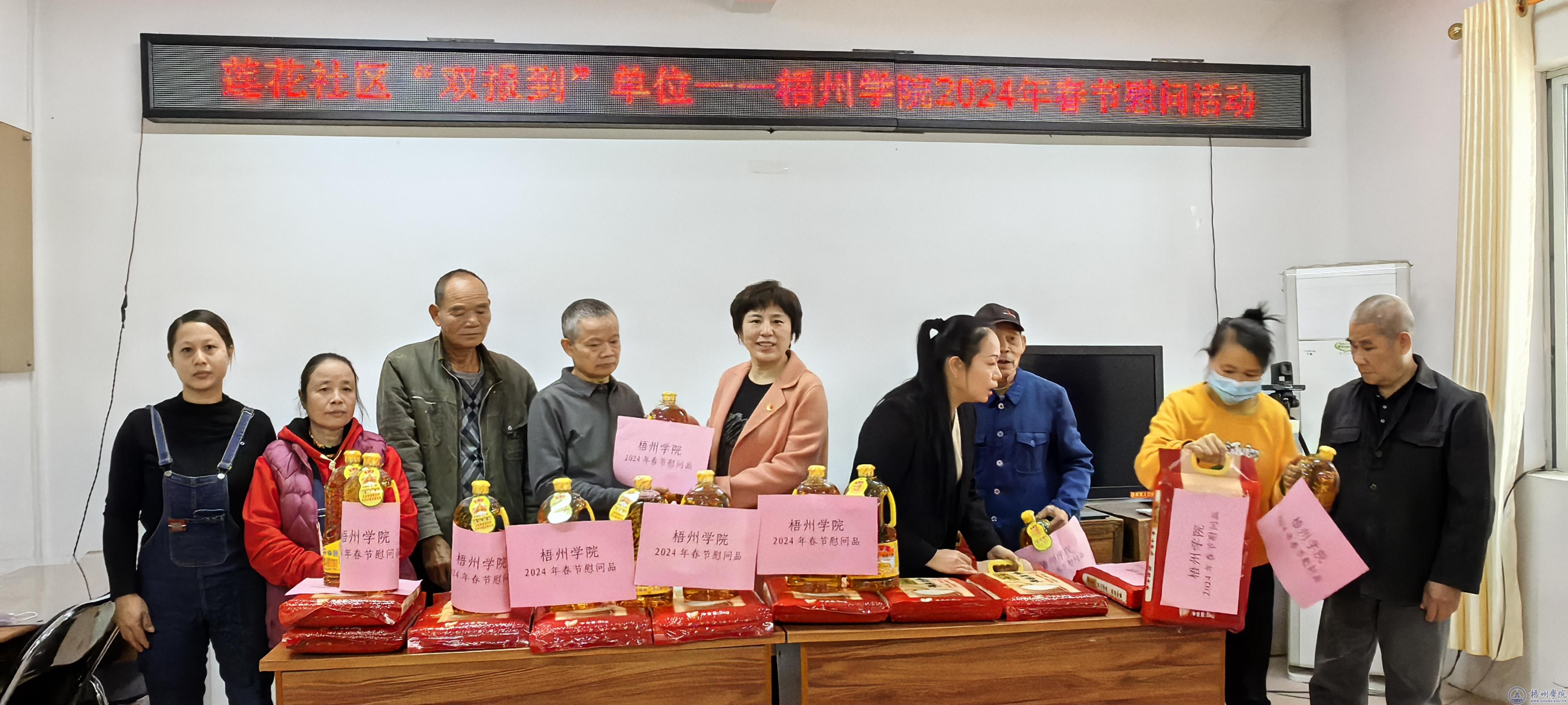 在2024年春节来临之际,1月8日上午党委组织部副部长刘洪君等一行三人代表“双报到”单位到莲花社区开展春节慰问活动。首先来到莲花社区慰问11位困难党员、残疾人、低保户代表。传递高校社会责任,关注困难群众,了解他们的身体状况和生活情况,为他们送上大米、油等慰问品,并致以节日的祝福。