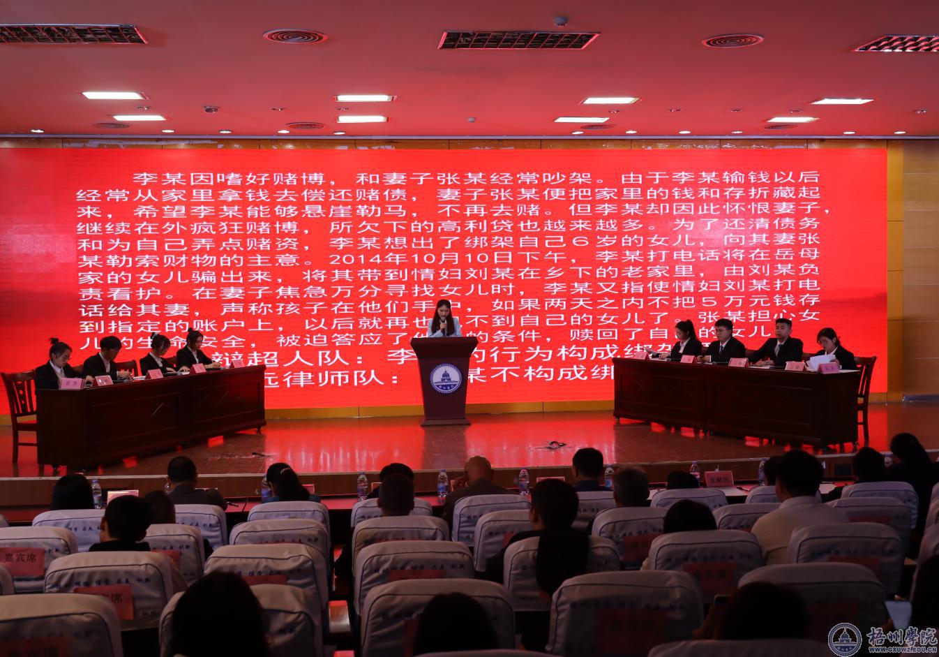此次辩论赛共有两场比赛,学生团队和专业律师团队各自派出正方和反方两队,进行对决。辩题均以案例形式呈现,涉及刑事犯罪的认定等一系列法律知识,两场精彩绝伦的比赛分别由梧州市检察院第一检察部莫火月主任和法学院副院长白续辉进行点评。