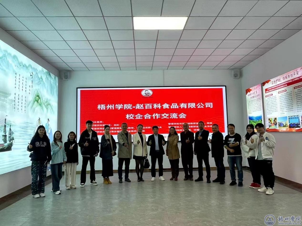 为了深化校企合作,推动校企协同育人,12月9日,管理学院副院长赵虹带领师生团队到赵百科食品有限公司进行参观交流,企业负责人赵百科董事长对前来的师生们表达热烈的欢迎。