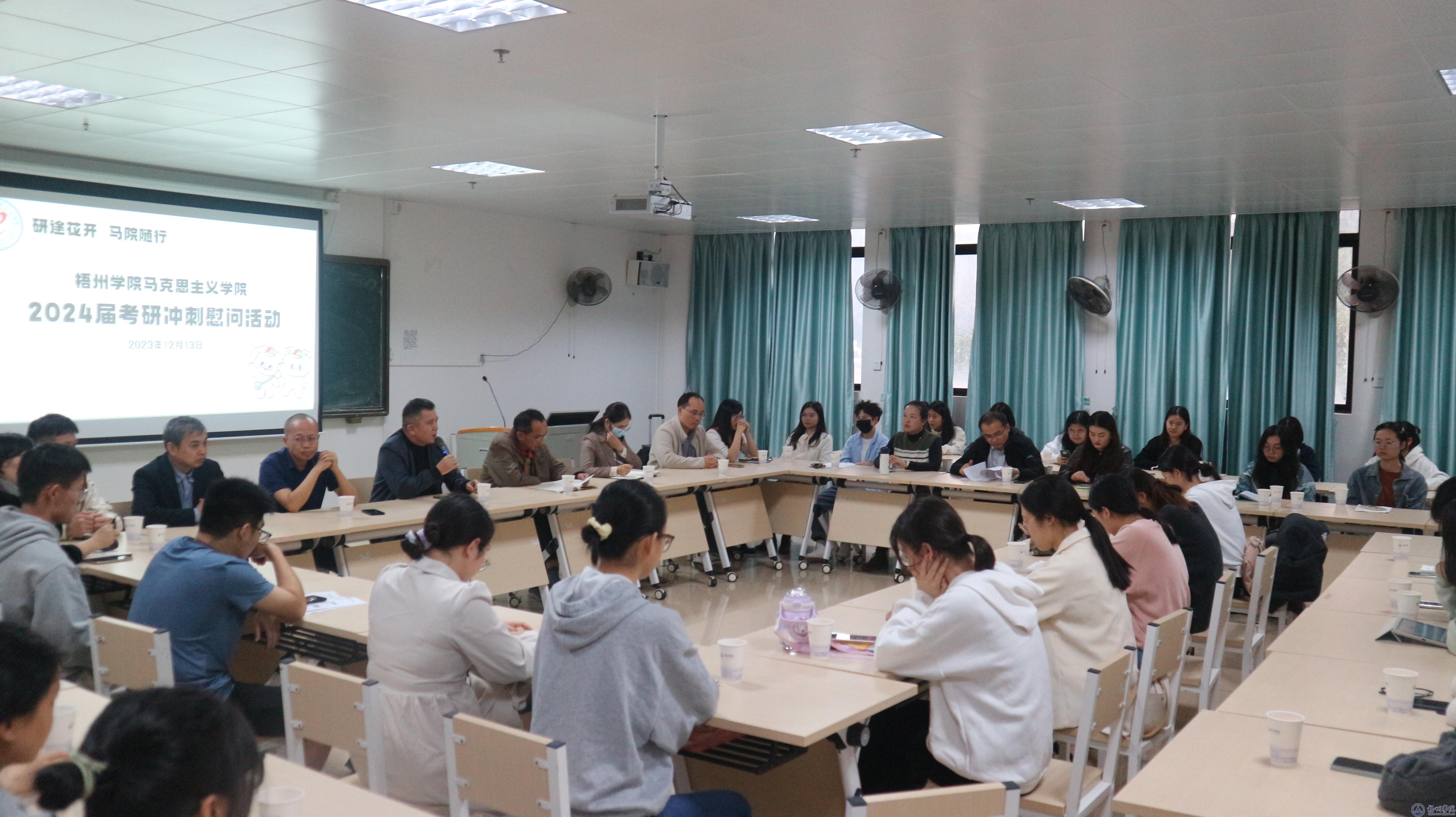 12月13日,马克思主义学院在明科楼k303开展2024届考研冲刺慰问活动,马院领导班子、哲学专业教研室全体教师及2020级考研学子们参加此次活动。