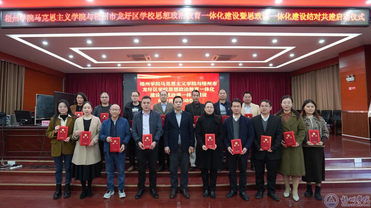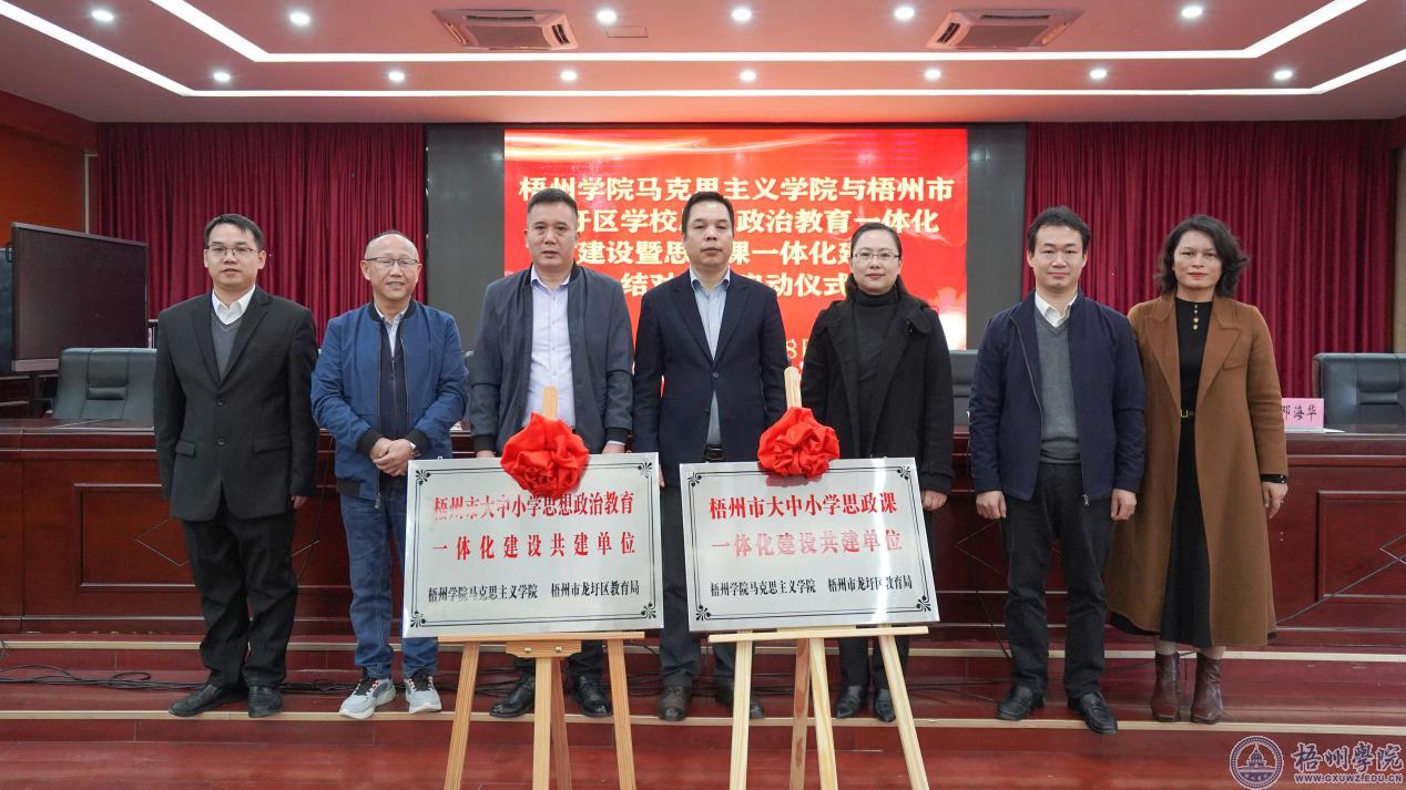 12月8日,梧州学院马克思主义学院与梧州市龙圩区教育局的学校思想政治教育一体化建设暨思政课一体化建设共建结对启动仪式在梧州市苍海小学举行。马克思主义学院院长陈健萍、副院长唐景成、龙圩区副区长甘忠义、龙圩区教育局局长邓海华以及双方有关人员参加了活动。