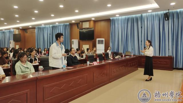 唐玲老师以《芬芳的角度与温度》为主题,讲述了自己成为优秀教师的心路历程,分享了南宁市兴桂路小学从无到有、从有到优的发展历程。与同学们分享了自己的办学理念和教学方法,向同学们传达了以坚定信念从事教育事业的深刻感悟。并一一解答同学们的互动提问,鼓励同学们学好专业知识、广泛涉猎通识知识、处理好人际关系,提高思想品德,加强素养历练。