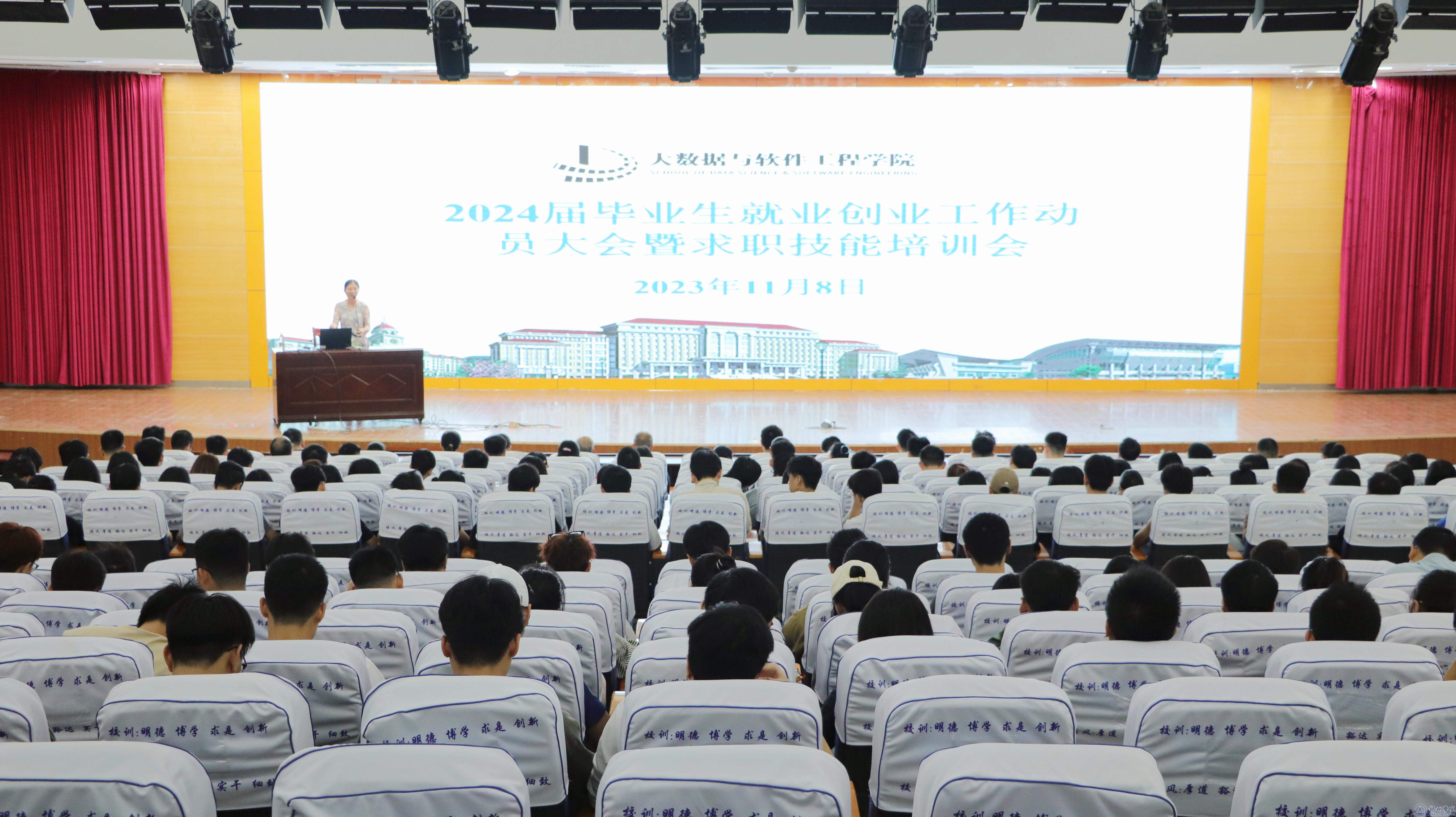 为了扎实做好2024届毕业生就业创业指导与服务工作,提高毕业生就业创业竞争力。11月8日下午,大数据与软件工程学院在明理楼学术报告厅召开2024届毕业生就业就业创业动员大会暨求职技能培训会。学院全体教职员工、2024届全体毕业生参加了本次大会。