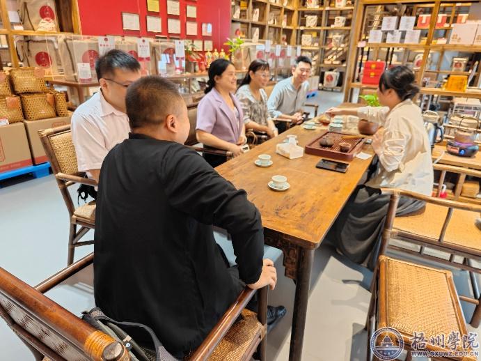 邱丽平带领来访教师参观了纯好六堡茶制茶车间、纯好六堡茶陈列馆、电商直播仓,介绍了纯好茶业的生产研发过程和制茶理念以及纯好茶业电商平台的营销模式,双方进行了品鉴交流和深入探讨。纯好茶业团队表达了与学院深入合作,共同探索电商新业态人才培养的期望。