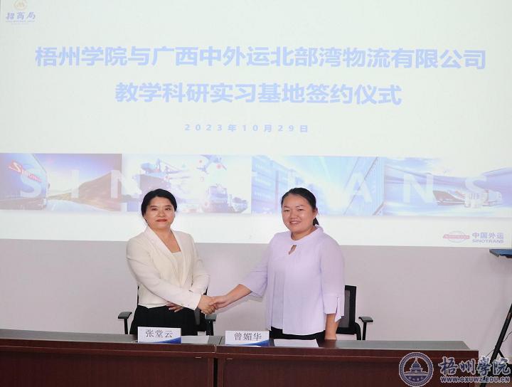 近期,学校国际商务硕点与广西中外运北部湾物流有限公司、中外运广西船务代理有限公司举行“教学科研实习基地”的签约揭牌仪式。