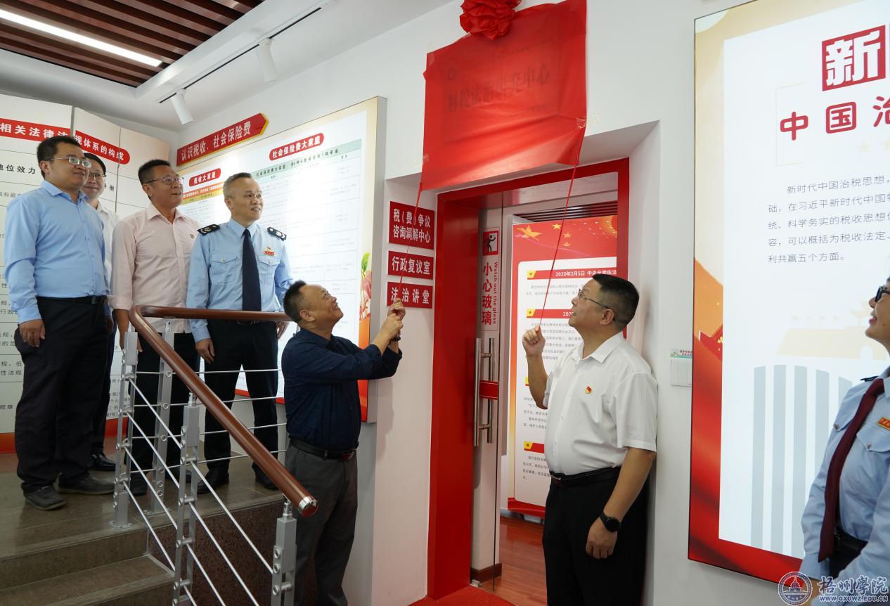 梧州市税务局法制科、公职律师办公室、征收管理科、纳税服务科、纳税服务中心各科室负责人,学校国际经贸与法律研究院院长白续辉、法学院教师代表参加了揭牌仪式。