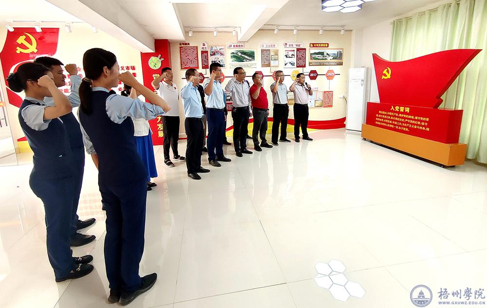 为推动新时代新征程校企党建共建取得更大成效,10月18日上午, 学校继续教育学院、国资处、审计处、保卫处党支部和桂林银行梧州市河东支行党支部到广西甜蜜家蜂业有限公司联合开展党建活动。