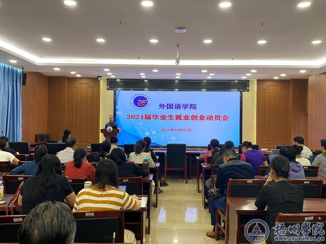 10月25日下午,外国语学院在明科楼一楼报告厅召开2024届毕业生就业创业工作动员会。学院党委书记朱宇乾、党委副书记韦翠兰、学院全体教职工参加本次会议。