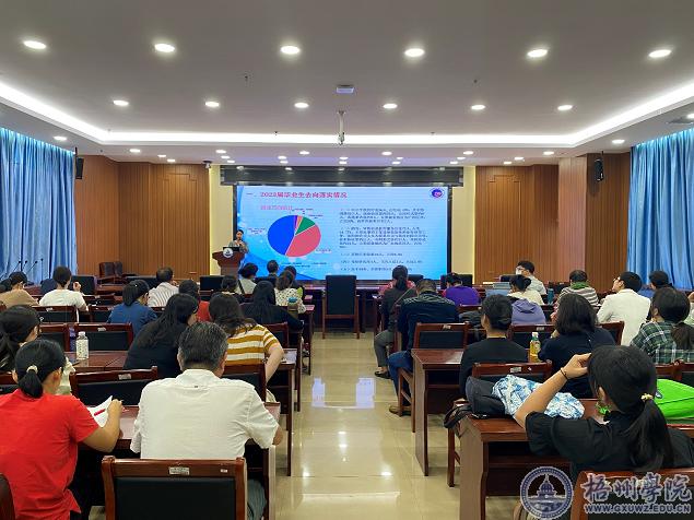 韦翠兰总结了2023届毕业生就业创业情况,对2024届毕业生就业工作作出形势研判。她提出下一步的工作思路,从机制保障、服务保障、信息保障三个方面推进毕业生就业工作。