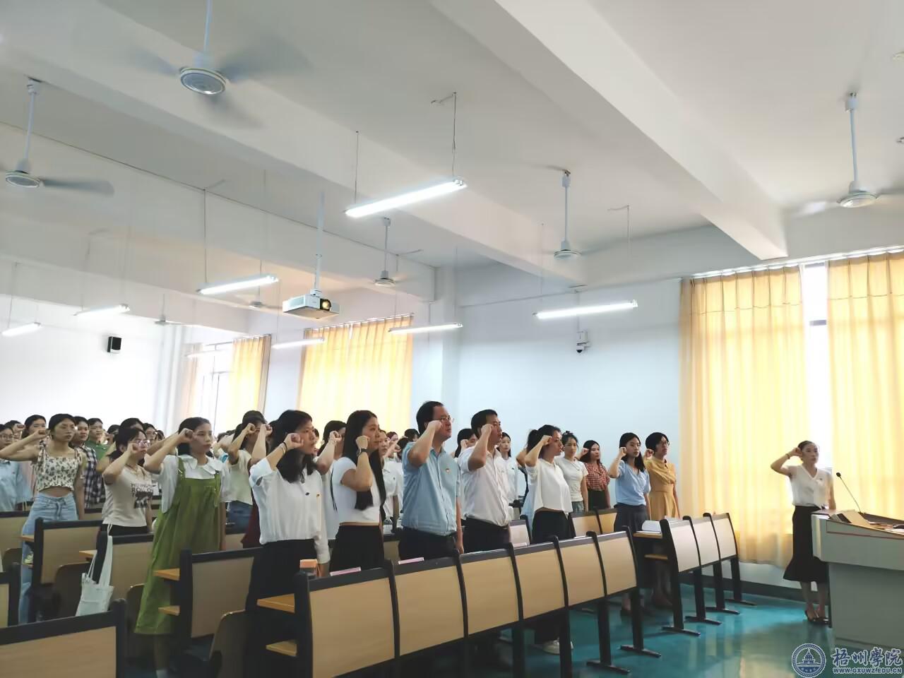 接着,毕业生党员代表莫韦坤分享自己在校的收获和感悟,并对学院的栽培表达感谢。最后,陈燕老师带领全体毕业生党员重温入党誓词,讲解毕业生党组织关系转接的程序和注意事项。