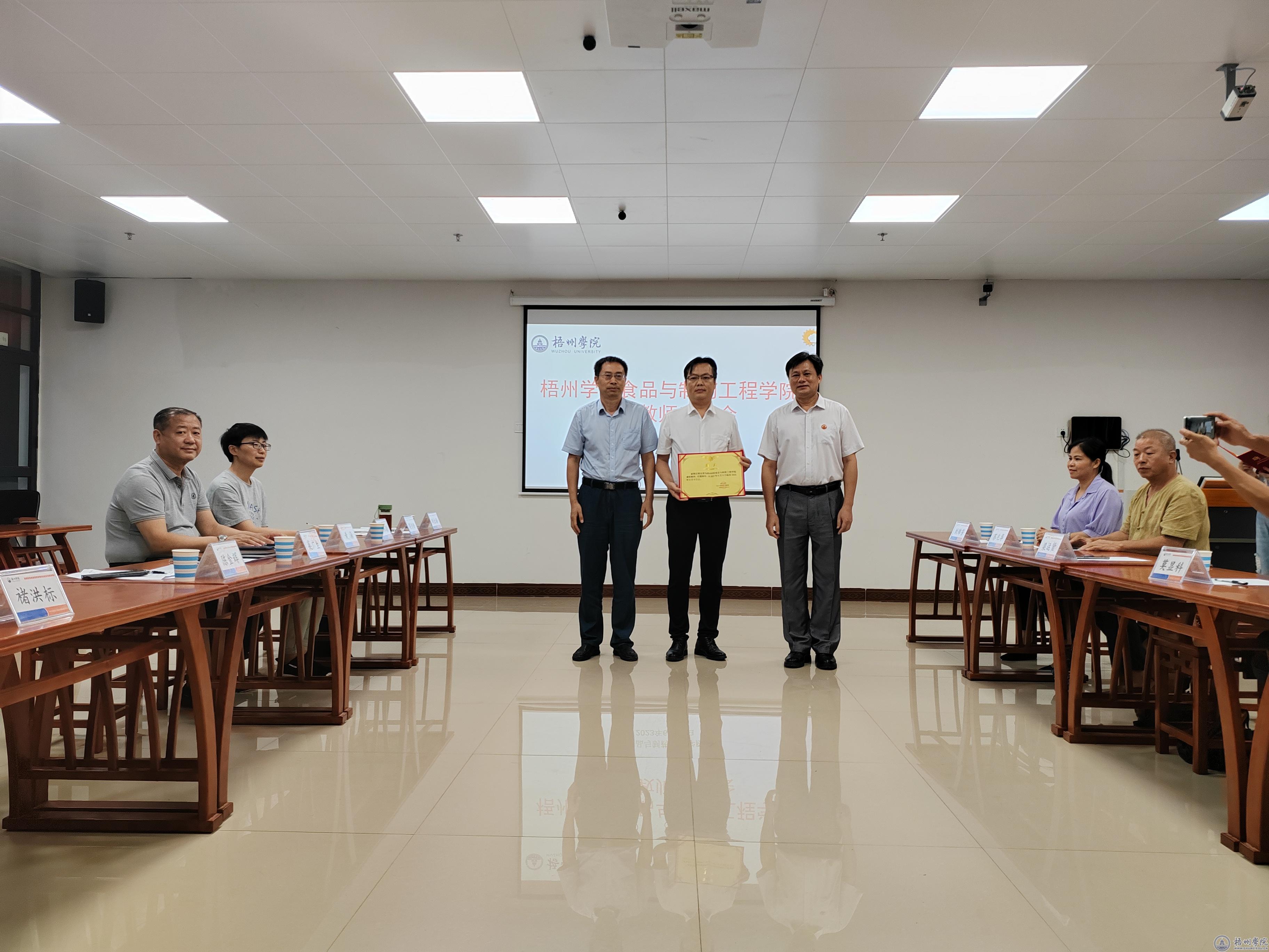 为广泛听取校外兼职教师对提高学院办学质量的意见建议,6月26日下午,食品与制药工程学院在明科楼K1512室举办校外兼职教师座谈会。苍梧县六堡茶专业合作社社长、自治区级非物质文化遗产项目(六堡茶制作技艺)代表性传承人黎坚斌,广西神冠胶原生物集团有限公司副总经理梁运贤等7名校外兼职教师,以及食药学院班子成员和教师代表共同参加座谈。