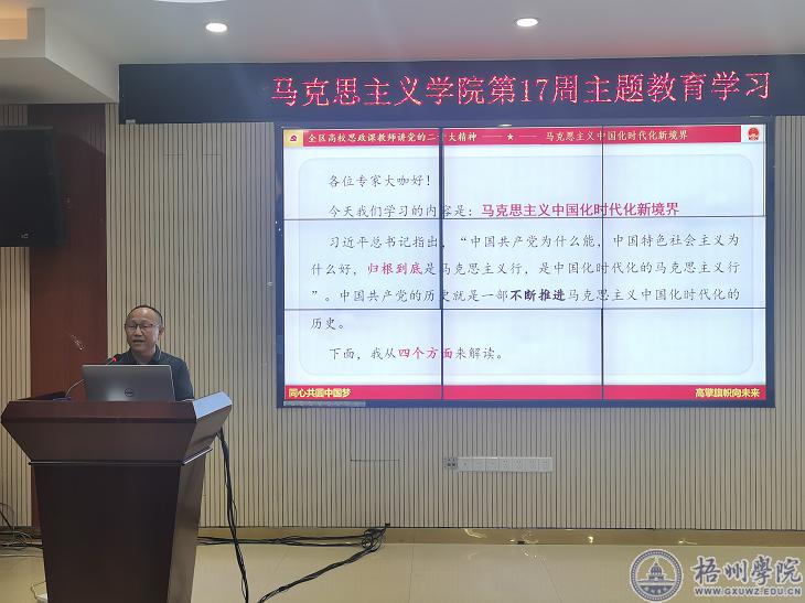 首先,由马克思主义学院院长尹杰钦讲专题党课:学习马克思主义中国化时代化新境界,深刻领会习近平总书记指出“中国共产党为什么能,中国特色社会主义为什么好,归根到底是马克思主义行,是中国化时代化的马克思主义行”的深刻意义。