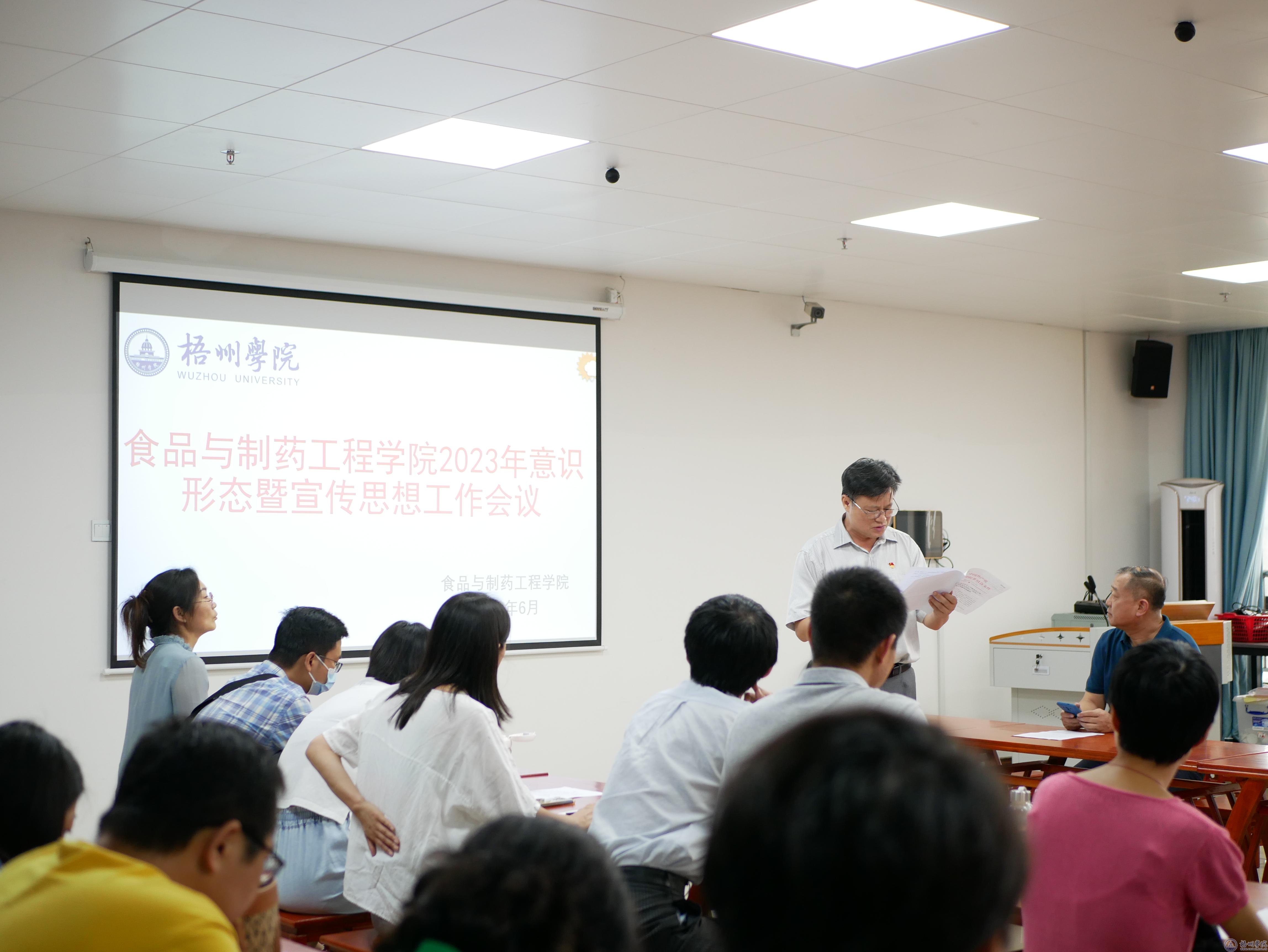 6月14日,食品与制药工程学院党委在明科楼K1512茶艺室召开2023年意识形态暨宣传思想工作会议,学院全体教职工参加会议,会议由党委书记陈金辉主持。