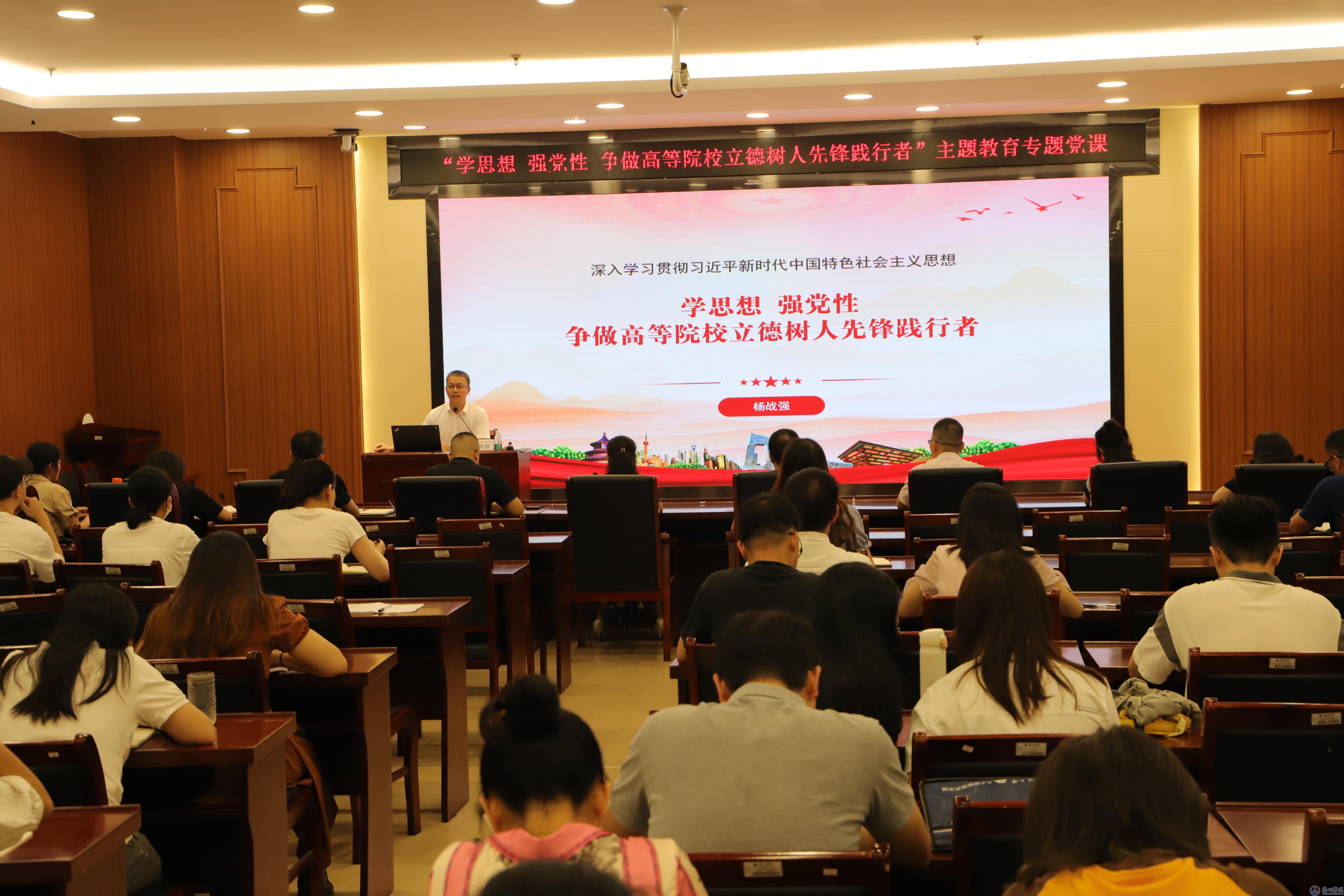 为深入学习贯彻习近平新时代中国特色社会主义思想,筑牢思想根基,强化理论武装,6月17日下午,学校在明科楼报告厅举办“学思想 强党性 争做高等院校立德树人先锋践行者”专题党课。藤县县委常委、组织部部长杨战强应邀讲授专题党课。学校党委基层党务干部能力提升培训班和“知信行”青年干部主题教育研学班全体学员参加党课学习。