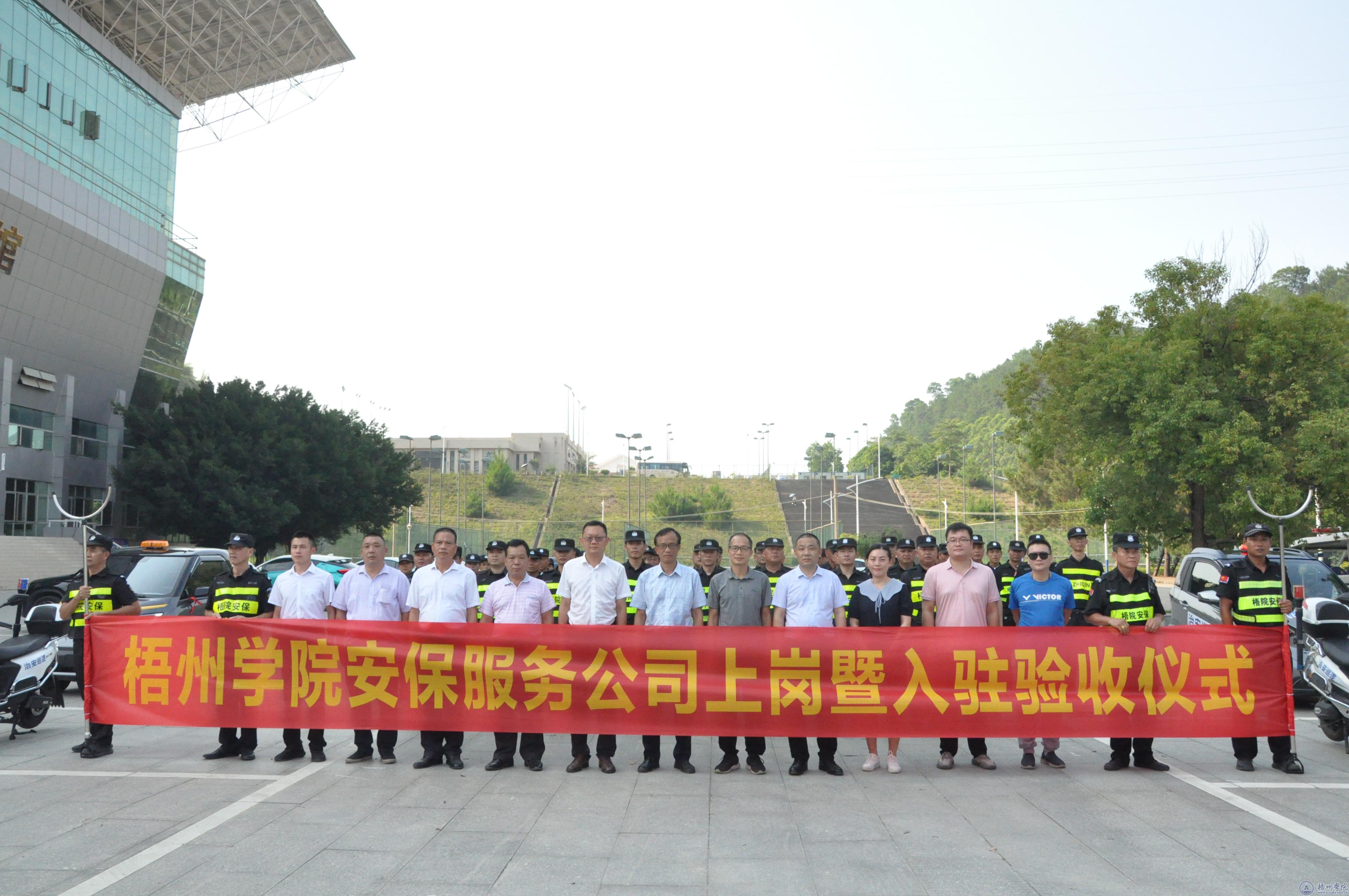 5月30日,梧州学院安保服务中标公司上岗暨入驻验收仪式在体育馆前举行,学校保卫处处长谢啟禄、副处长罗震,广东国保保安服务集团有限公司副总经理高水生、梧州分公司负责人蒋洪桥出席仪式,仪式由保卫处副处长罗震主持。