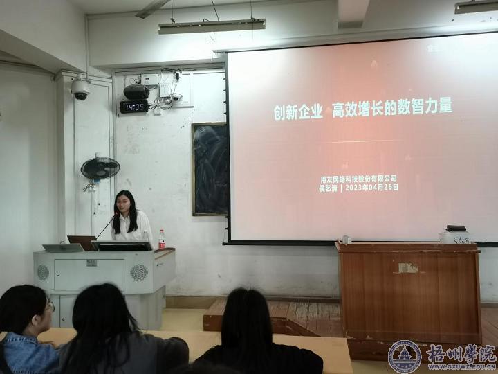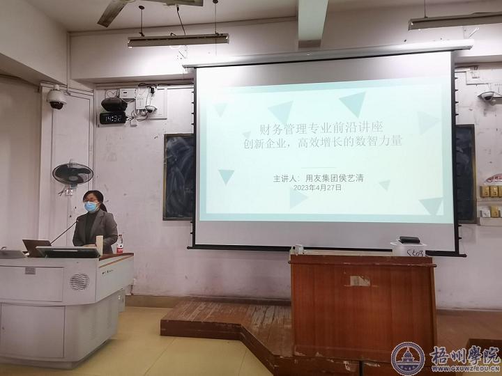 4月27日,管理学院在明理楼S-503举办《创新创业,高效增长的数智力量》主题讲座,主讲人是用友集团的中端与公有云BG成长性企业BIP事业部广西分公司负责人兼任方案咨询顾问侯艺清。讲座由财务管理专业教研室主任赵和玉主持,教研室的教师代表及20级财务管理专业全体同学参加了讲座。