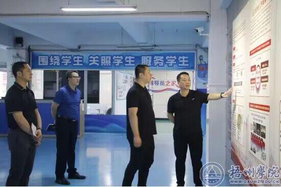 在我校学工处人员的陪同下,广西艺术学院学工处唐韡一行参观了体育馆负一楼学生工作创新发展基地,了解我校学生工作的主要阵地和经验做法。