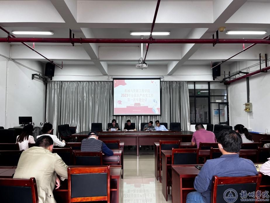 4月12日下午,机械与资源工程学院在科技楼1303会议室召开2023年全面从严治党工作第一次专题会议。学院领导班子成员和全体教职工参加会议,会议由学院党委副书记、纪委书记许玉婷主持。