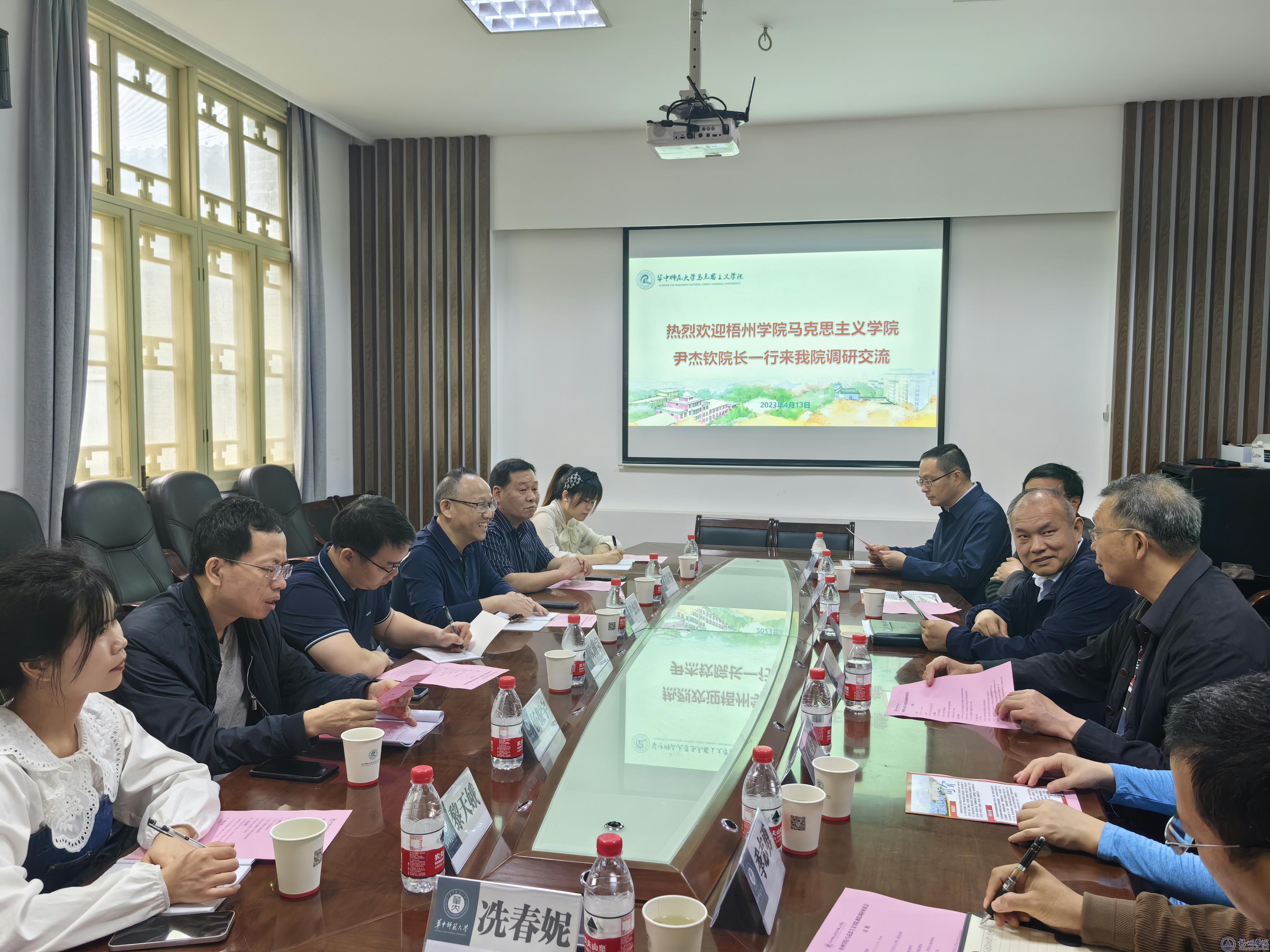 4月13日,学习组一行来到全国重点马克思主义学院——华中师范大学马克思主义学院交流,院长万美容、思想政治教育系主任陈华洲、哲学系党支部书记戴圣鹏等分别详细介绍了学院的历史沿革、师资队伍、马克思主义理论学科建设、课程建设情况,特别针对我院关心的专业定位、迎接专业评估工作经验进行了详细介绍。会上,双方就思政课教学、哲学专业与思想政治教育专业建设等方面进行充分交流。