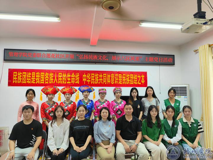 为了弘扬民族文化,传承传统民族文化的内涵,拓展民族文化视野,激发文化认同和民族自信,增进与社区的交流,4月19日,管理学院联合莲花社区开展“弘扬民族文化·展示八桂风采”民族文化双报到活动,学院党委书记冀宁、师生党员代表及团员代表参加活动。