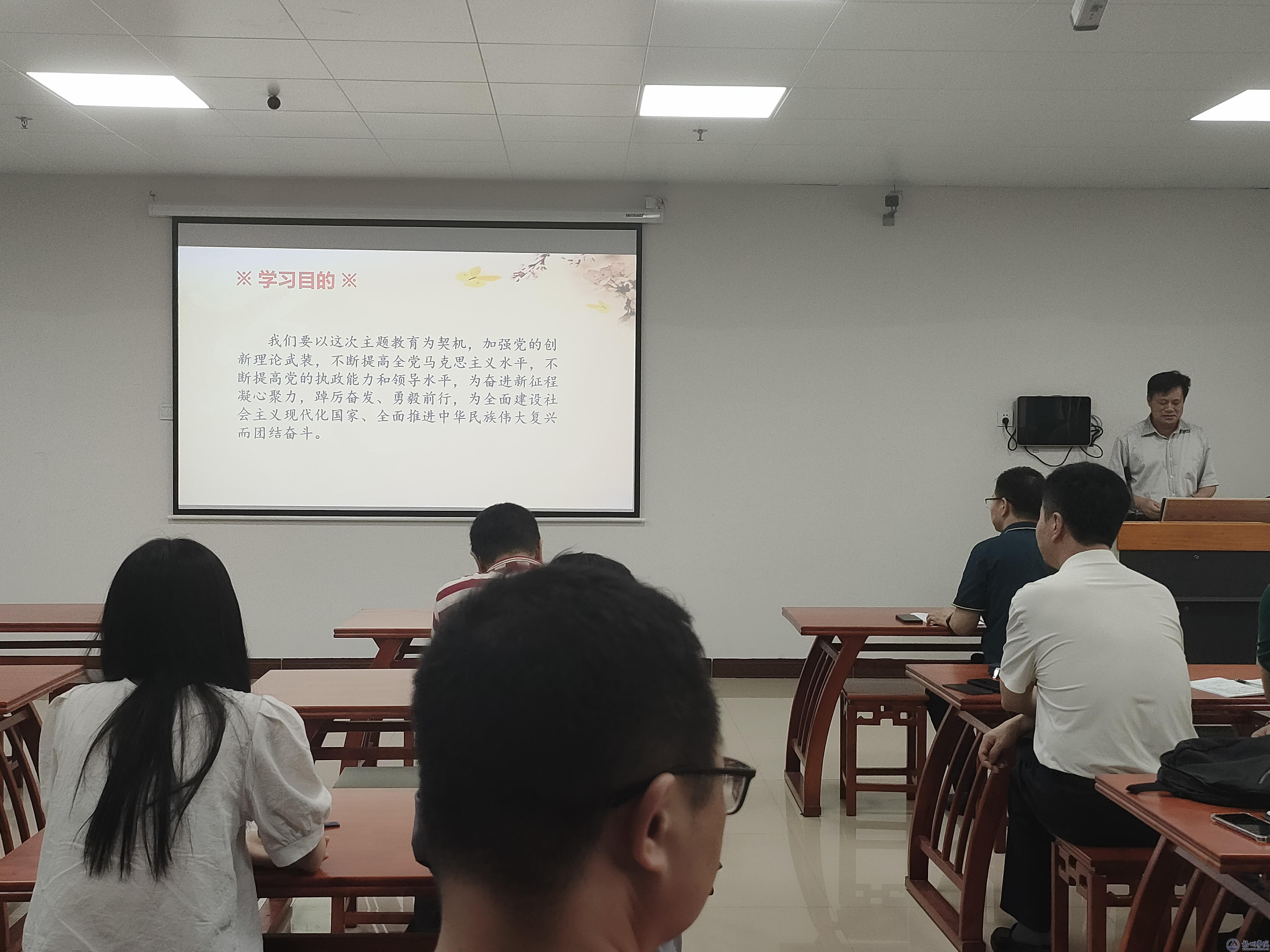 4月19日下午,食品与制药工程学院党委在明科楼K1512茶艺室开展学习贯彻习近平新时代中国特色社会主义思想主题教育党课。党课由学院党委书记陈金辉主讲,学院班子成员和全体教职工参加了党课学习。