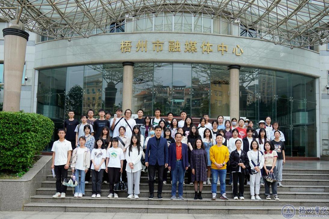 为加深同学们对马克思主义新闻观的理解,提高同学们将新闻理论运用到具体实践中的能力,4月12日下午,马克思主义学院党委书记张朝松带队到梧州市广播电视台开展参访研学实践活动。梧州市广播电视台党委委员、融媒中心总监李彪,台纪委委员、办公室主任谭欣彤,台纪委委员、融媒中心副总监杨子雄,广播中心副总监陈嘉鸣参加活动。