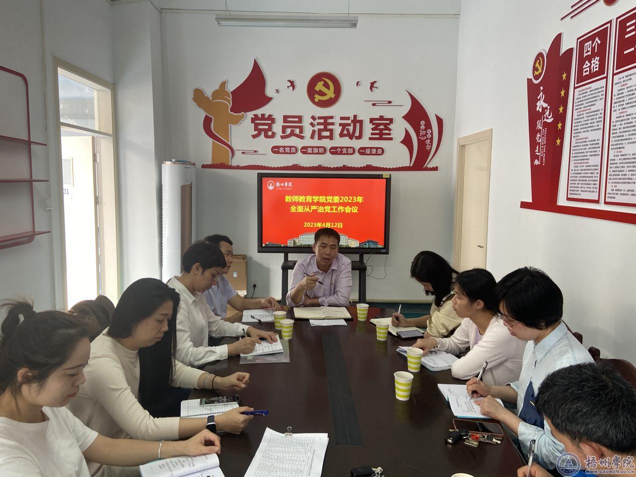 4月12日下午,教师教育学院党委组织召开2023年全面从严治党工作会议,会议由学院党委书记黄焕克主持,学院党委委员、各党支部书记参加会议。